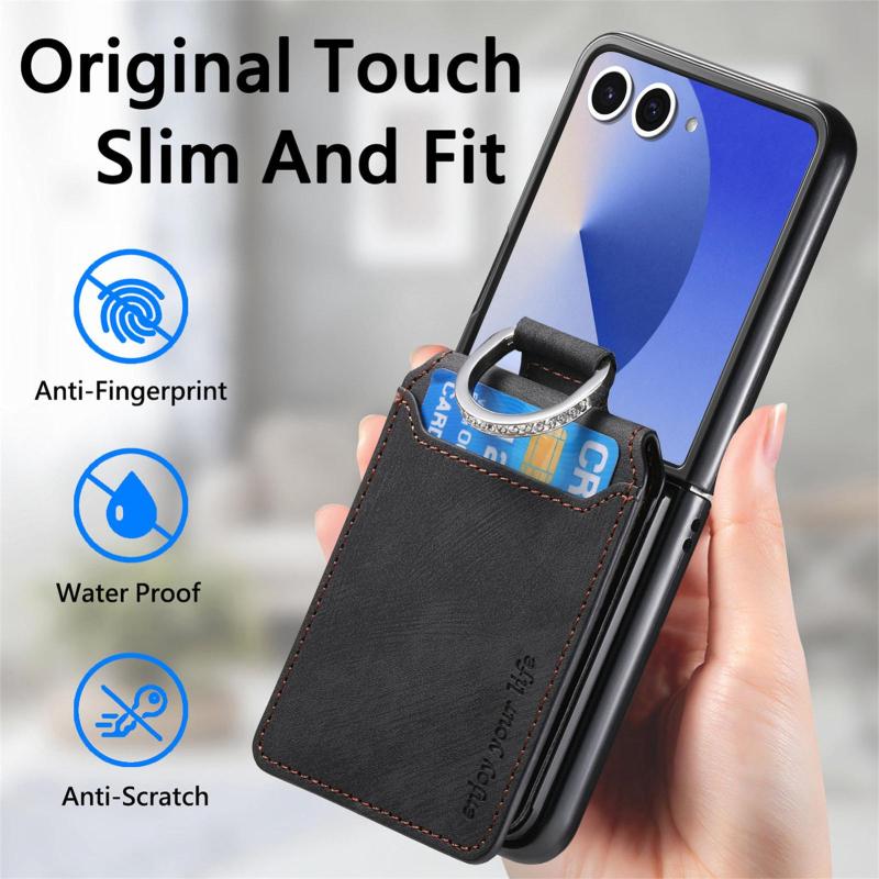 For Samsung Galaxy Z Flip7 5G Retro Leather Ring Vertical Flip Wallet Phone Case(Black)