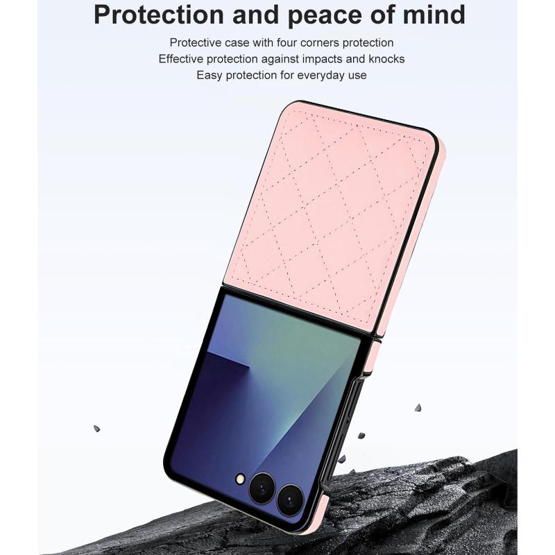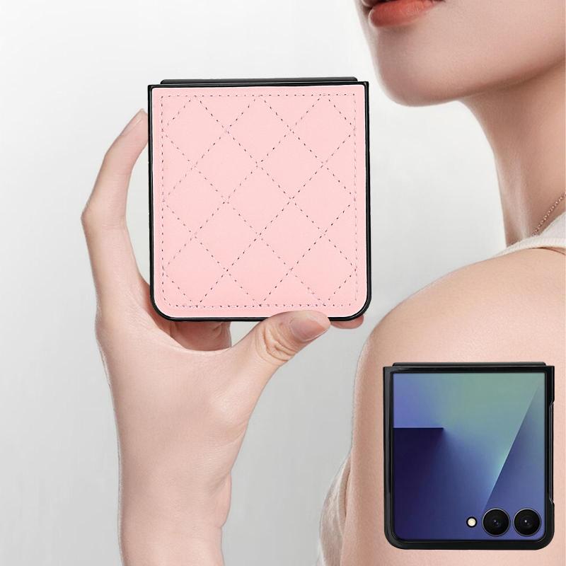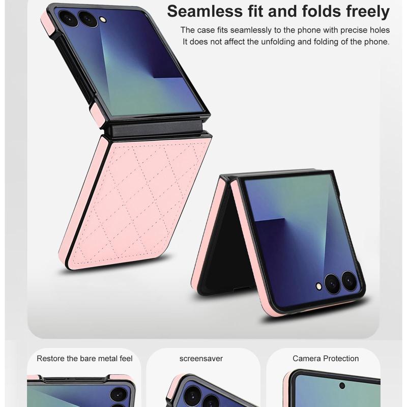 For Samsung Galaxy Z Flip7 5G Rhombic Fold Leather Phone Case(Pink)