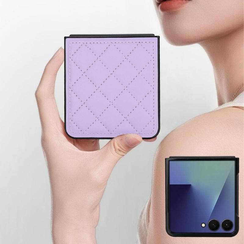 For Samsung Galaxy Z Flip7 5G Rhombic Fold Leather Phone Case(Purple)
