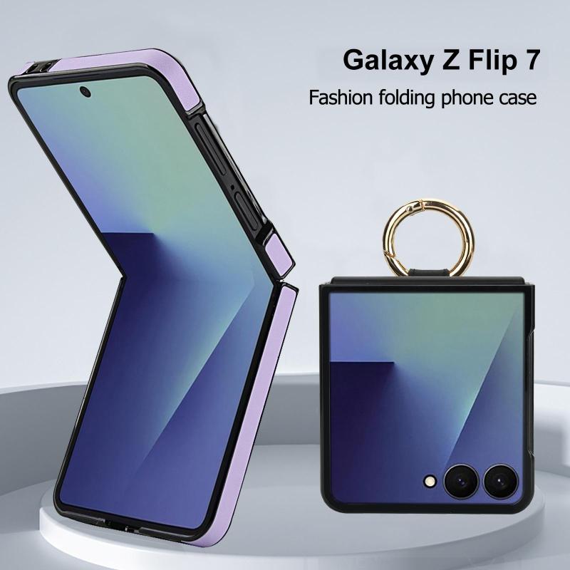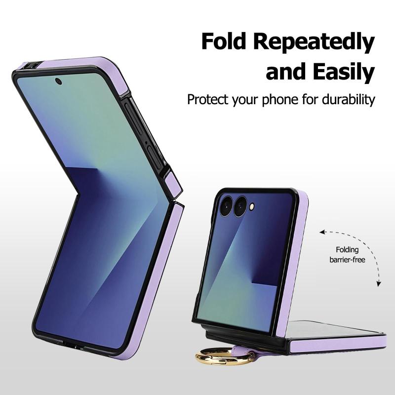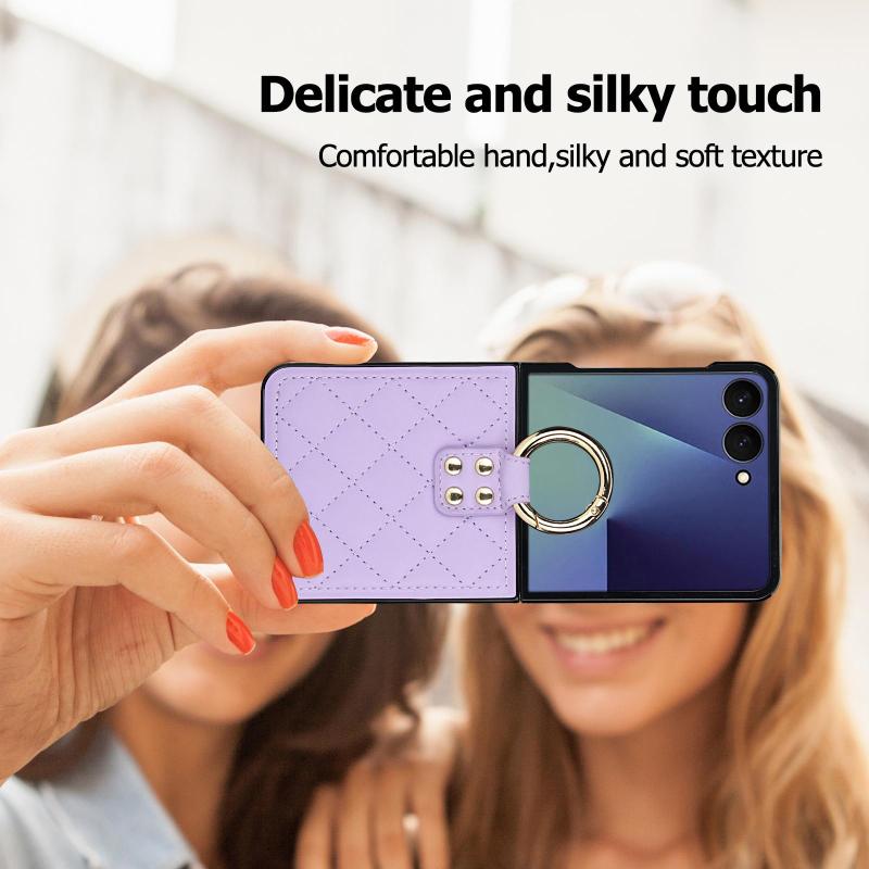 For Samsung Galaxy Z Flip7 5G Rhombic Texture Ring Holder PU Phone Case(Purple)