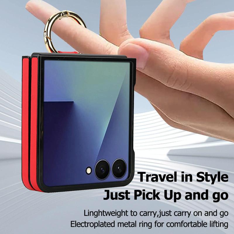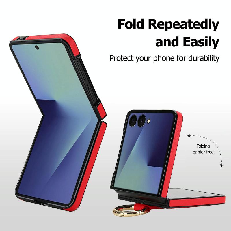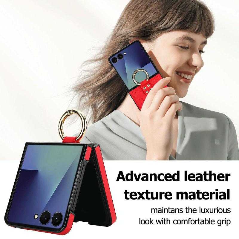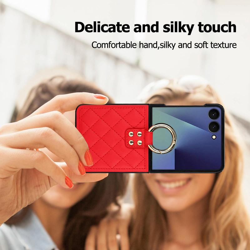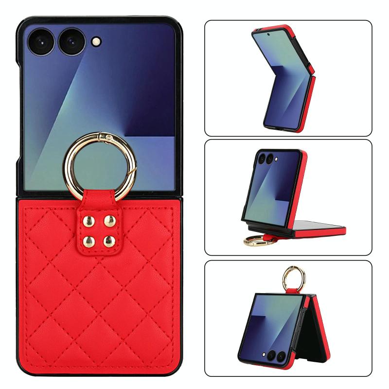 For Samsung Galaxy Z Flip7 5G Rhombic Texture Ring Holder PU Phone Case(Red)