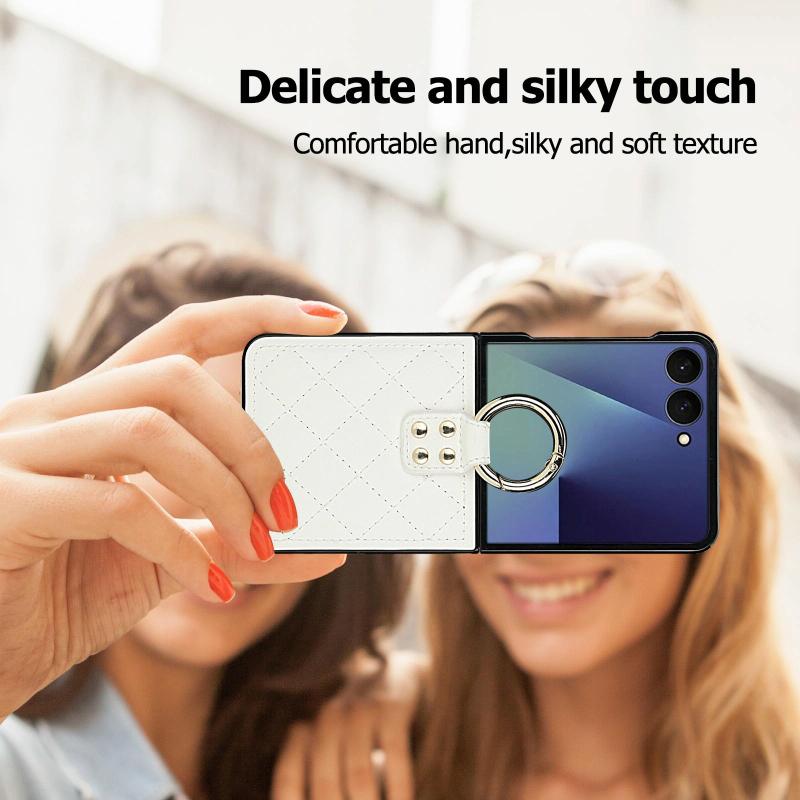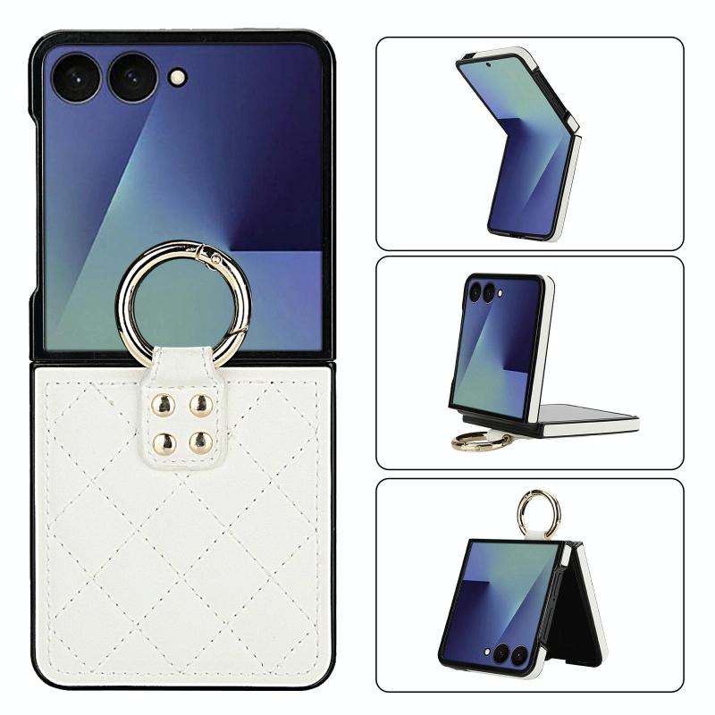 For Samsung Galaxy Z Flip7 5G Rhombic Texture Ring Holder PU Phone Case(White)