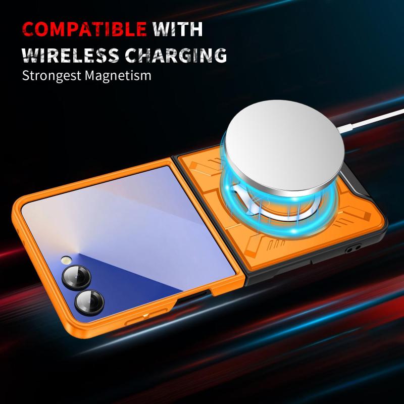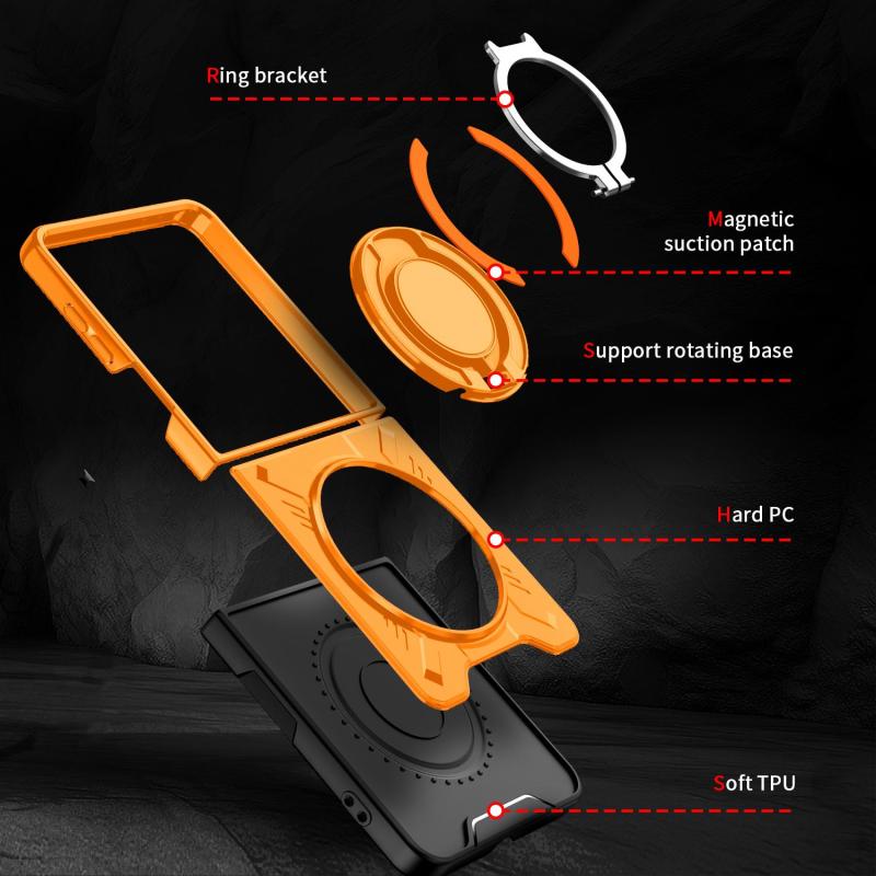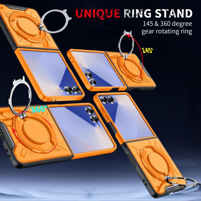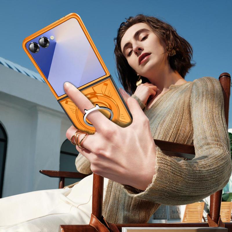 For Samsung Galaxy Z Flip7 5G Rotating Ring Holder Magnetic MagSafe Phone Case(Orange)