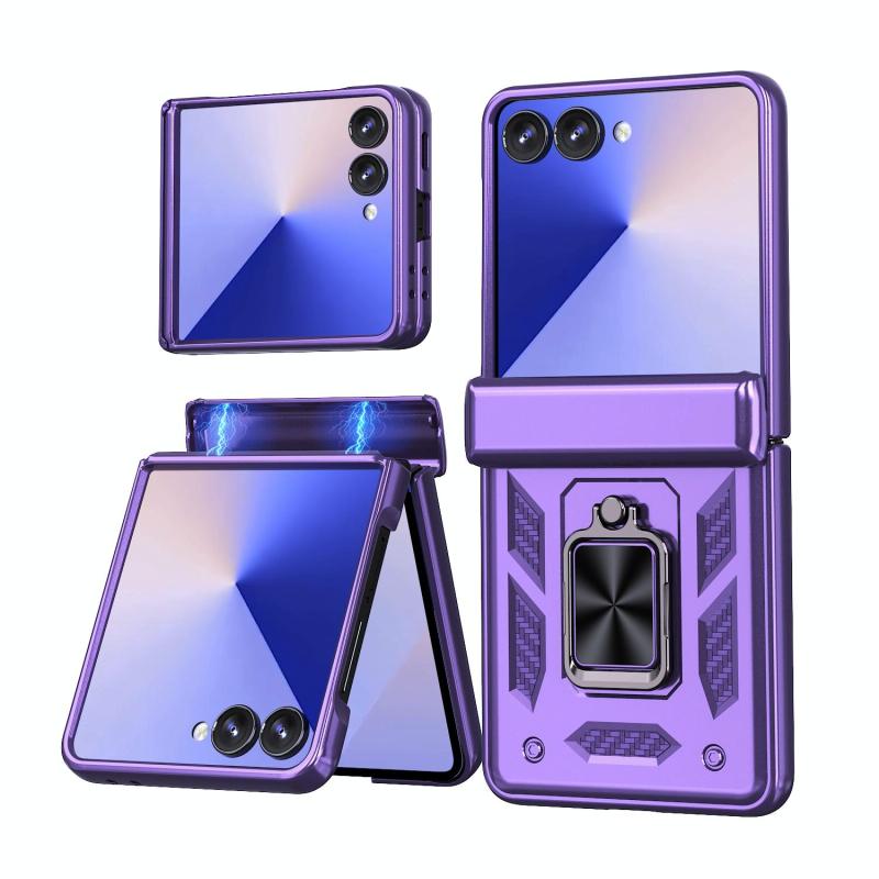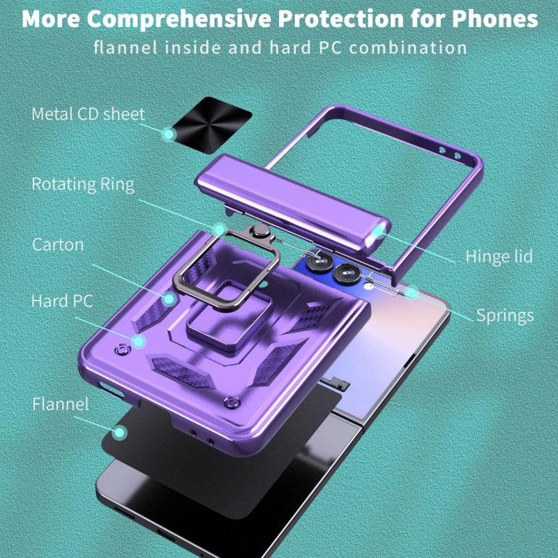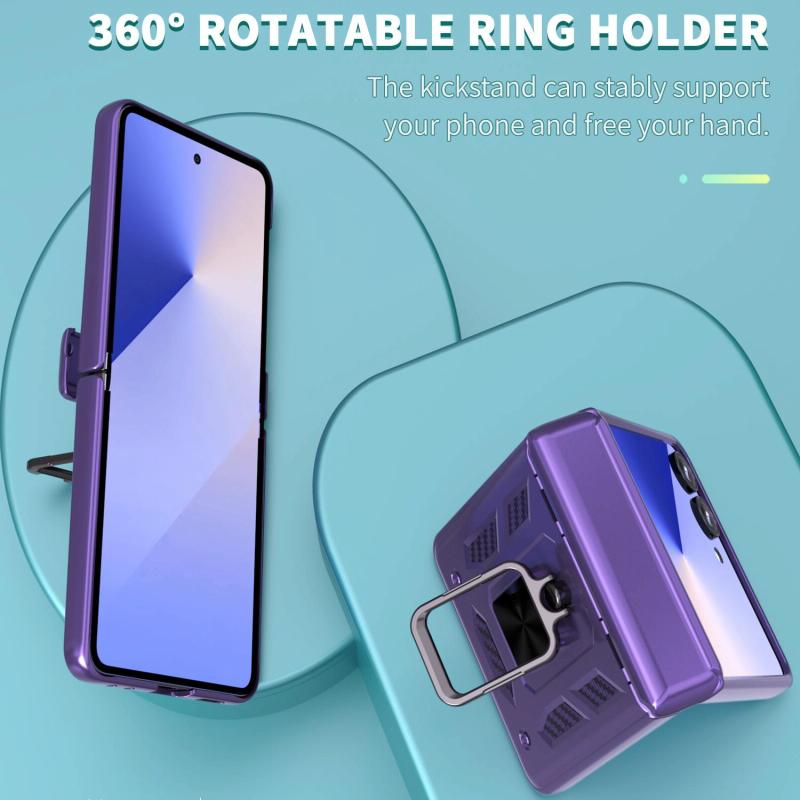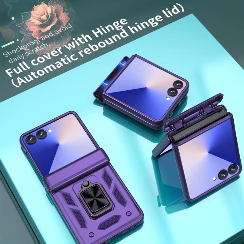 For Samsung Galaxy Z Flip7 5G Sliding Window Hinge Phone Case with Ring Stand(Purple)