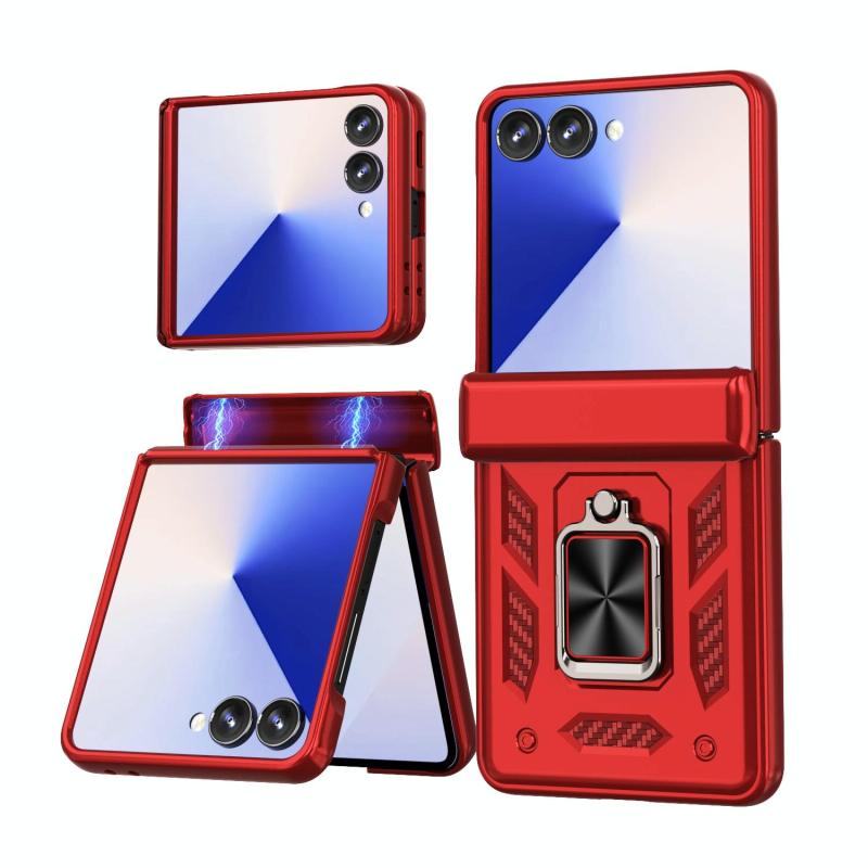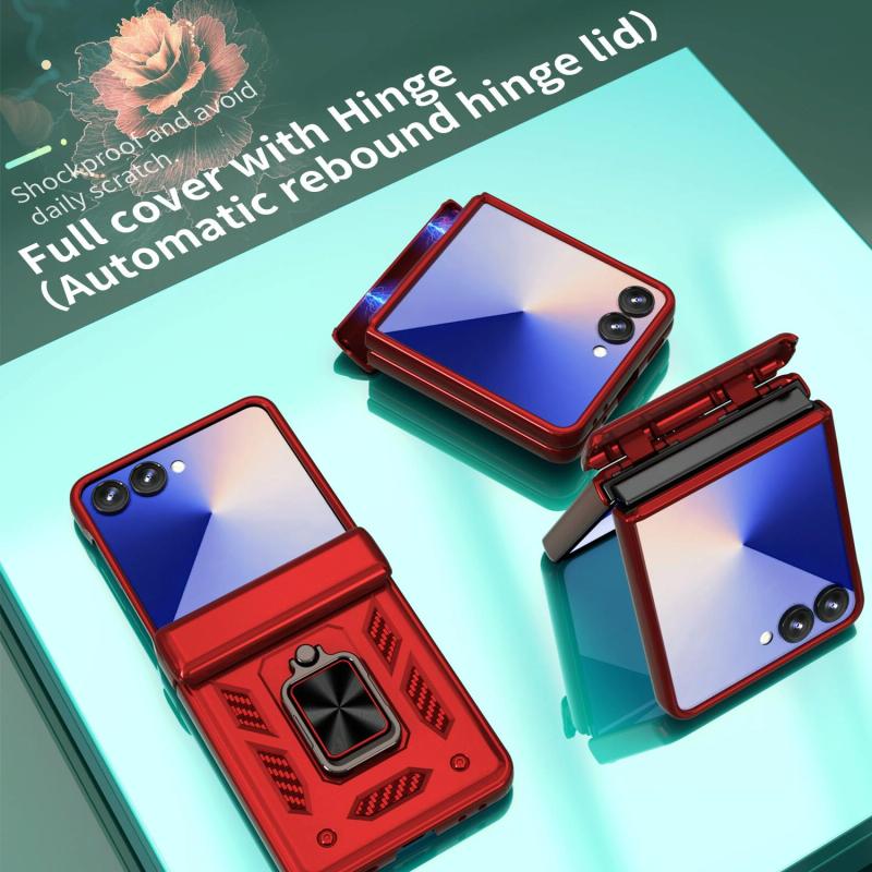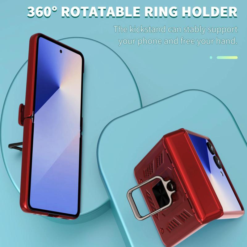 For Samsung Galaxy Z Flip7 5G Sliding Window Hinge Phone Case with Ring Stand(Red)