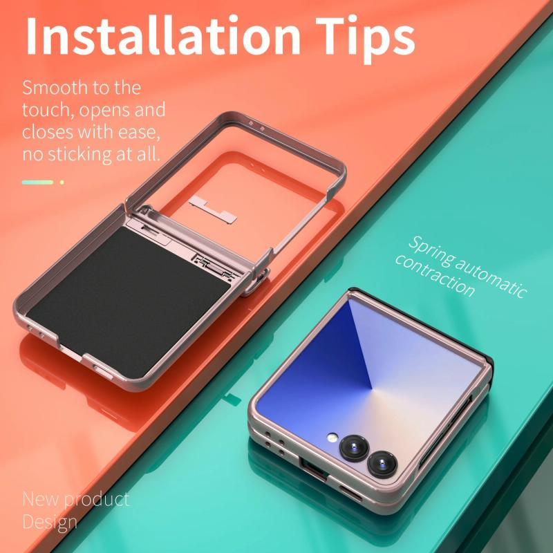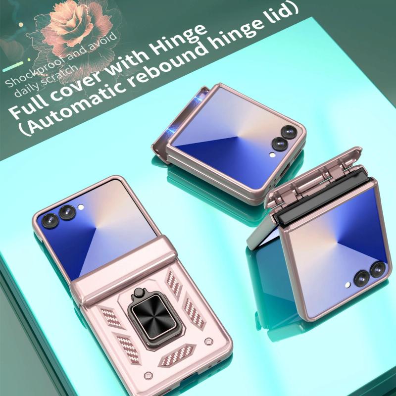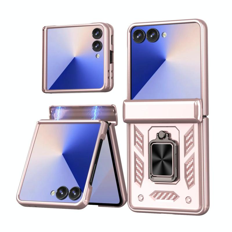 For Samsung Galaxy Z Flip7 5G Sliding Window Hinge Phone Case with Ring Stand(Rose Gold)