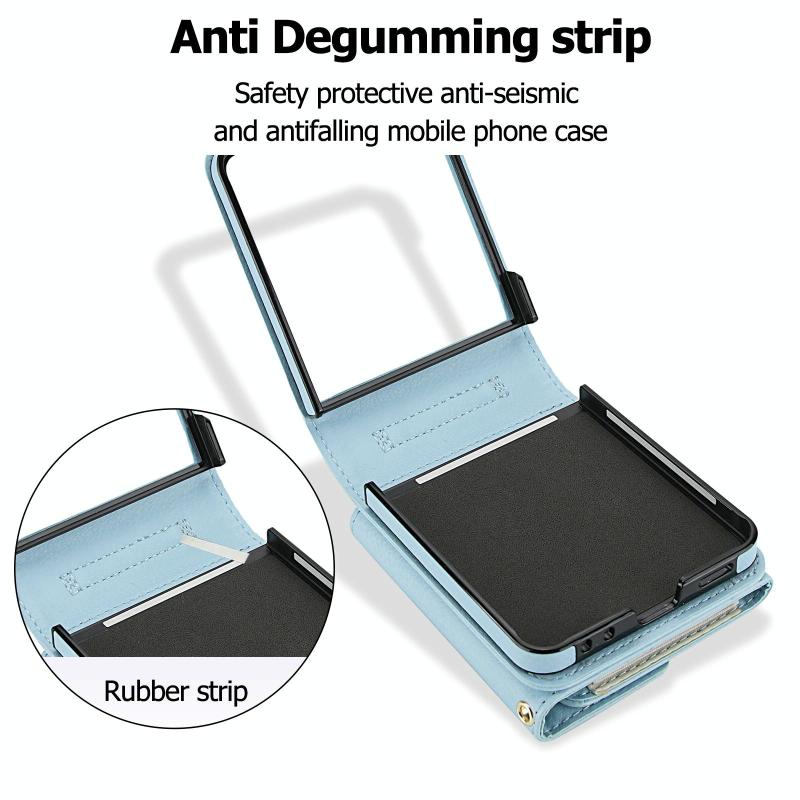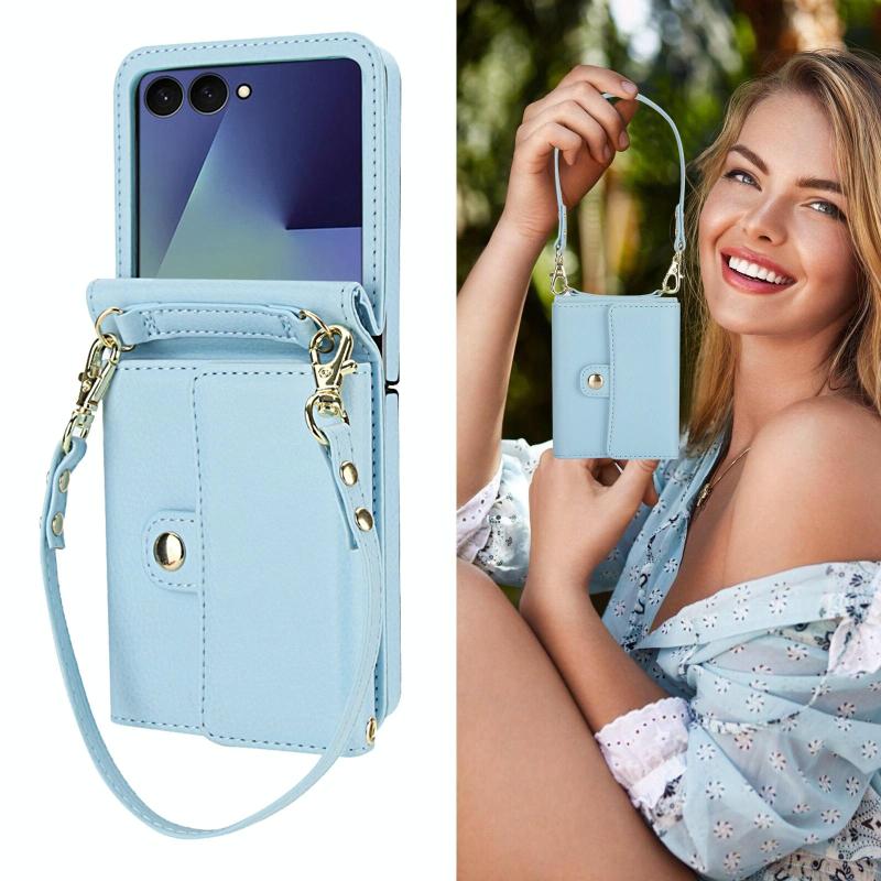 For Samsung Galaxy Z Flip7 5G Solid Color Backpack Wallet Card Slot RFID PU Phone Case(Blue)