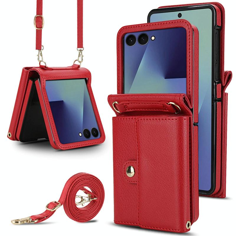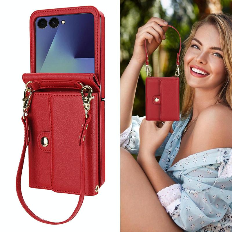 For Samsung Galaxy Z Flip7 5G Solid Color Backpack Wallet Card Slot RFID PU Phone Case(Red)