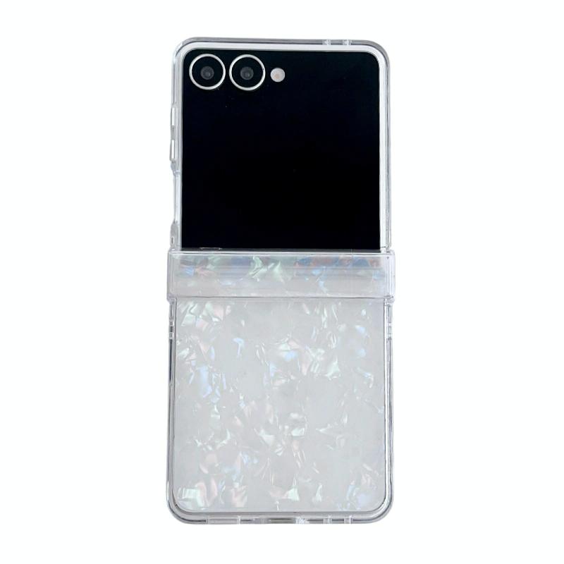 For Samsung Galaxy Z Flip7 5G Three-piece Set Pearlescent Shell Texture Phone Case(Beige)
