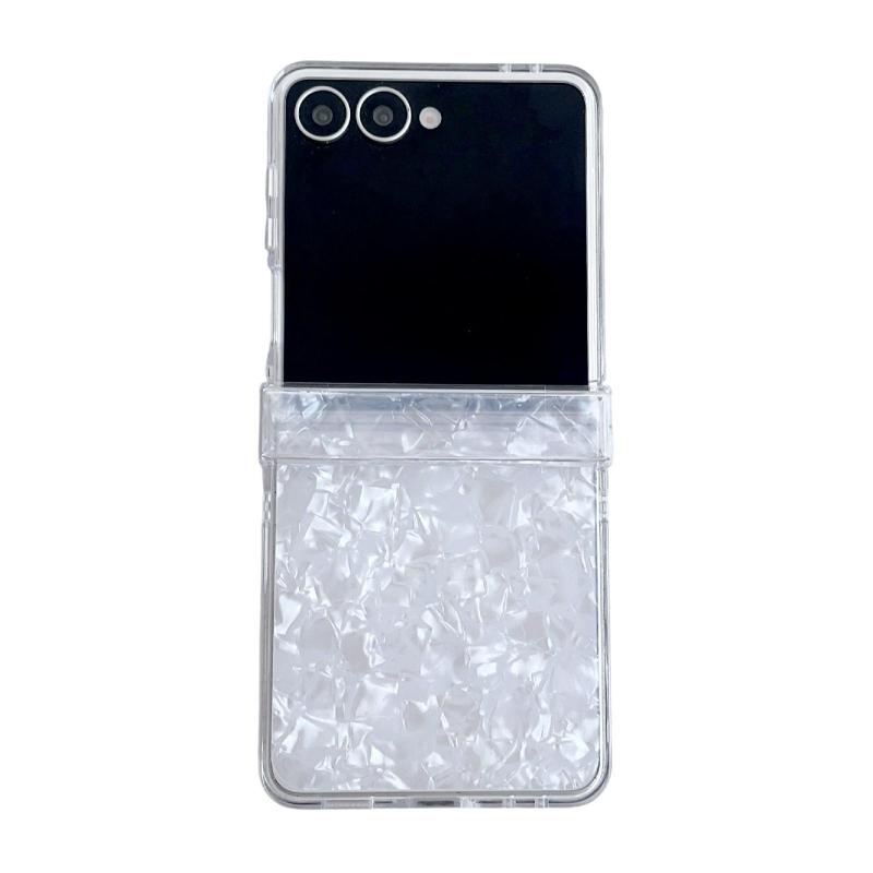 For Samsung Galaxy Z Flip7 5G Three-piece Set Pearlescent Shell Texture Phone Case(White)