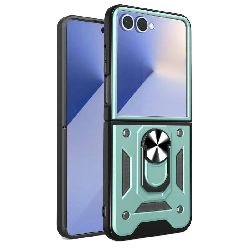 For Samsung Galaxy Z Flip7 Armor Magnetic Bracket TPU+PC Phone Case(Green)