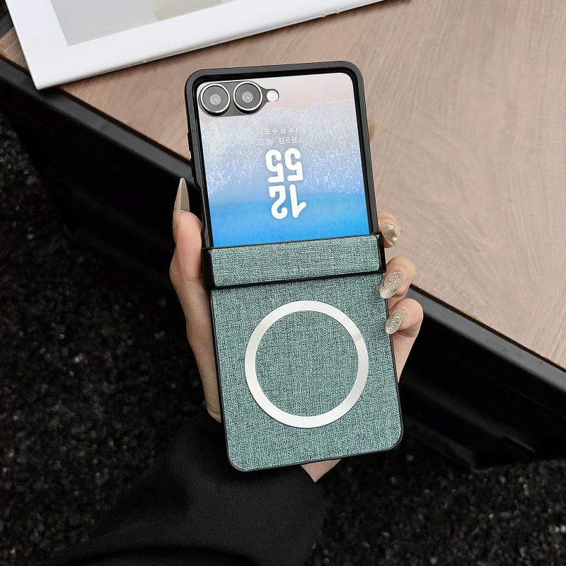 For Samsung Galaxy Z Flip7 MagSafe Back Screen Film Integrated Cloth Texture Phone Case(Green)