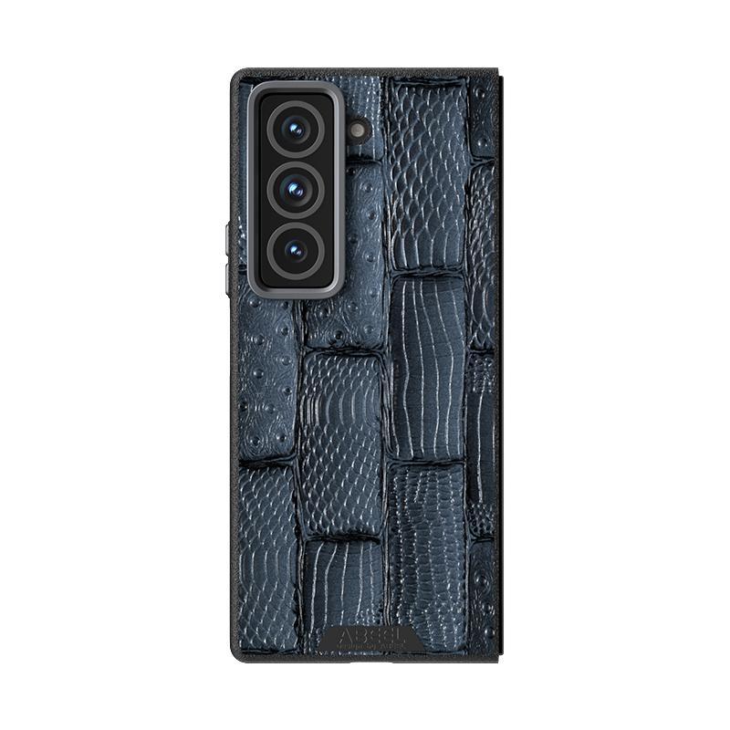 For Samsung Galaxy Z Fold Special ABEEL Beast Pattern 6D Micro-Embossed MagSafe Genuine Leather Phone Case(Blue)
