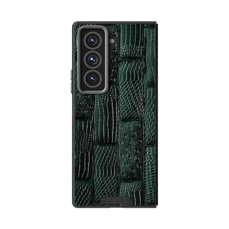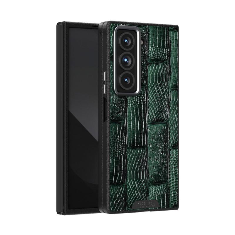 For Samsung Galaxy Z Fold Special ABEEL Beast Pattern 6D Micro-Embossed MagSafe Genuine Leather Phone Case(Green)