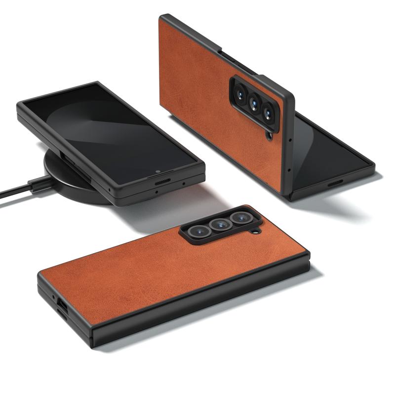 For Samsung Galaxy Z Fold Special Black Edge Two-color Calf Texture PU Phone Case(Brown)