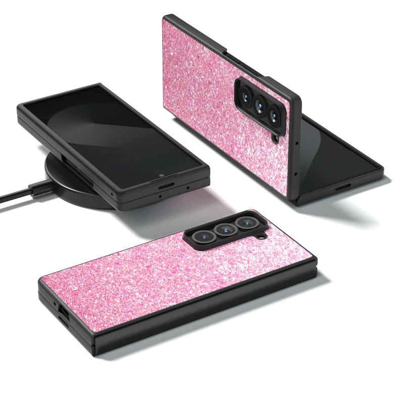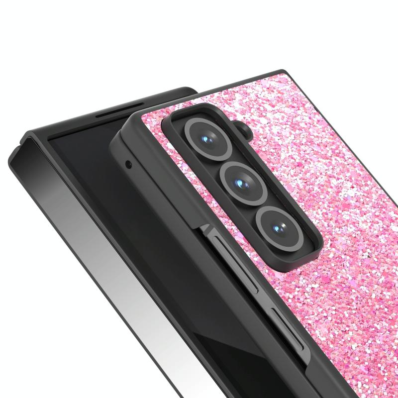 For Samsung Galaxy Z Fold Special Black Frame Colorful Glitter Phone Case(Purple Pink)