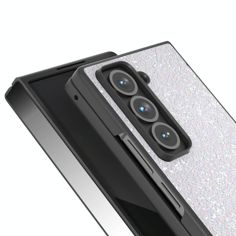 For Samsung Galaxy Z Fold Special Black Frame Colorful Glitter Phone Case(White)