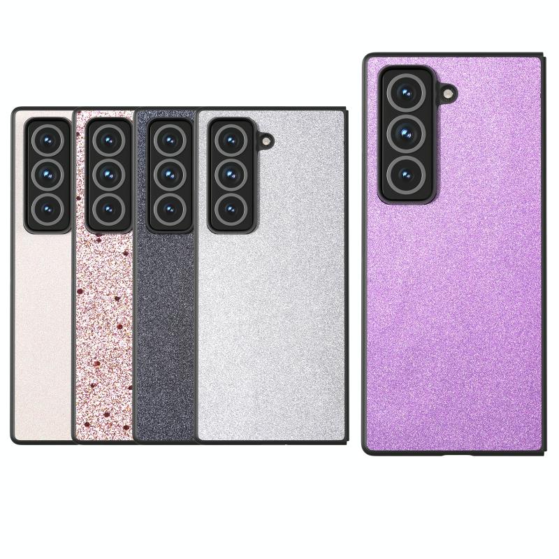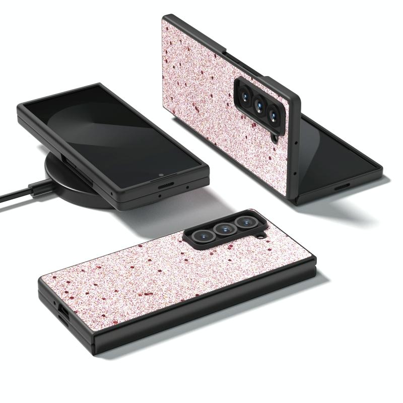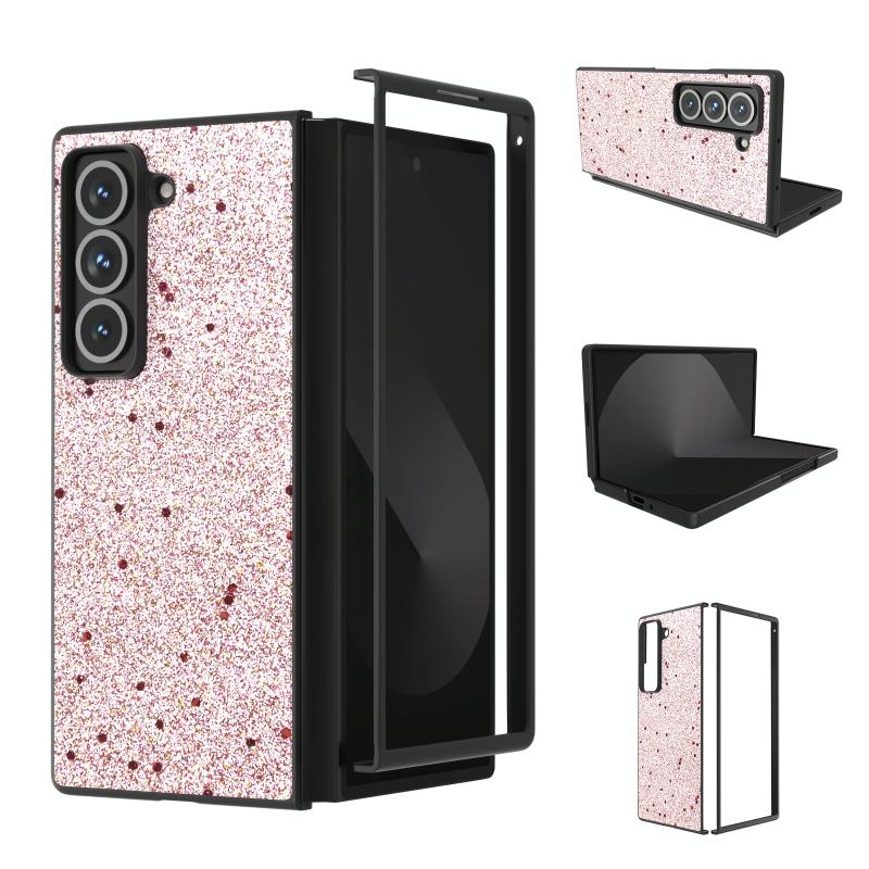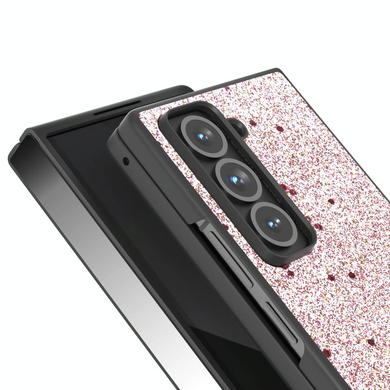 For Samsung Galaxy Z Fold Special Black Frame Glitter Shockproof Phone Case(Gold Pink)