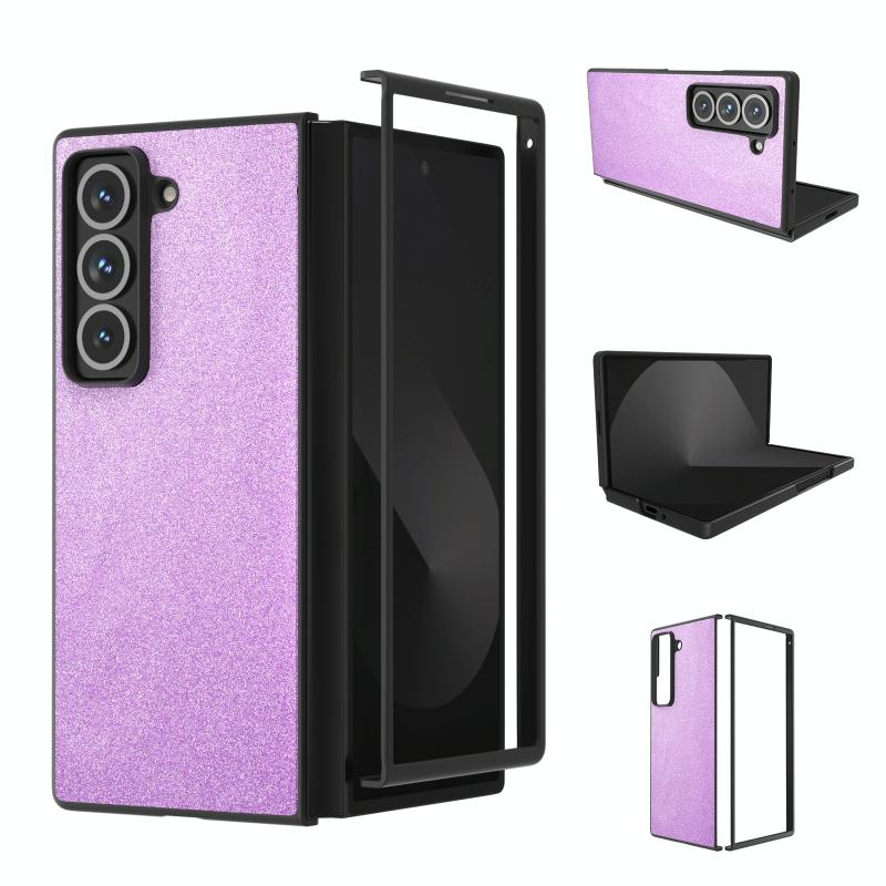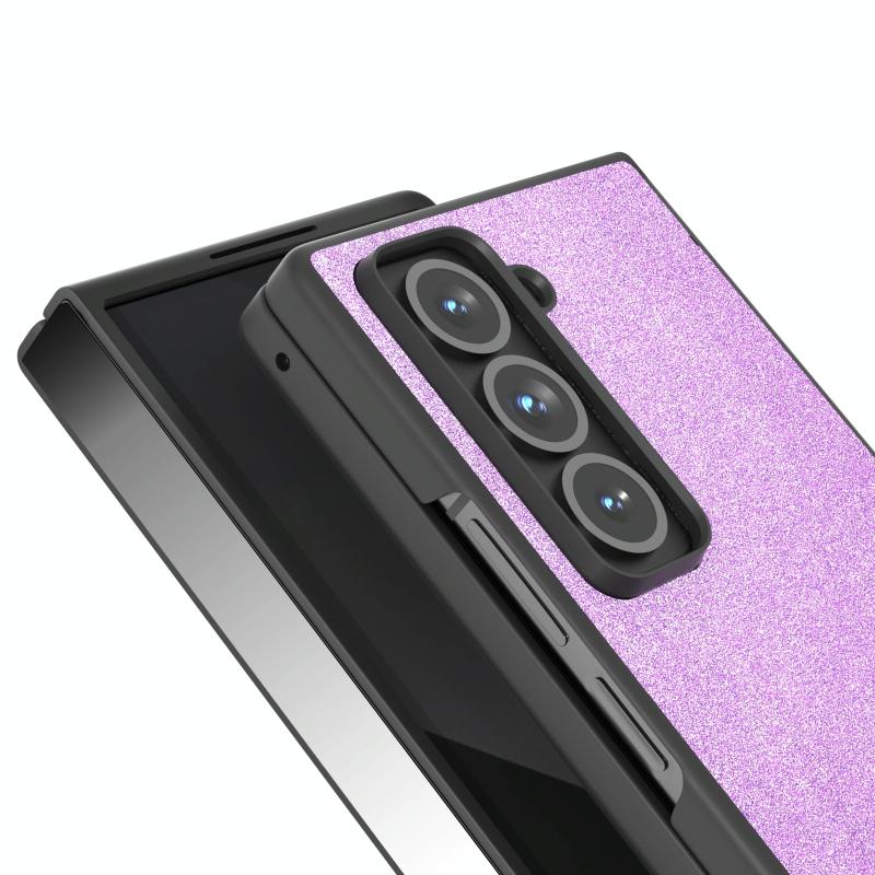 For Samsung Galaxy Z Fold Special Black Frame Glitter Shockproof Phone Case(Purple)