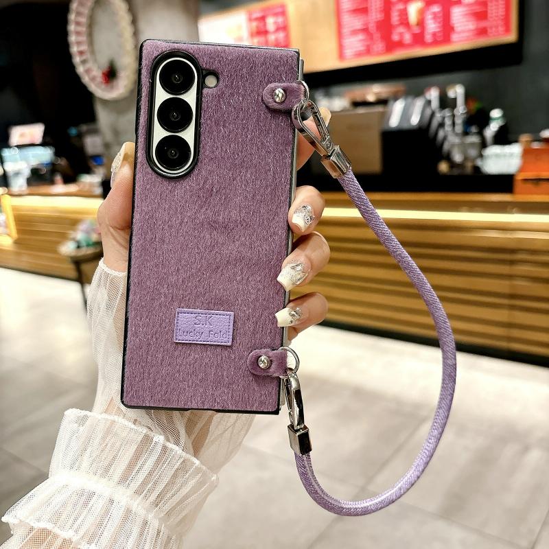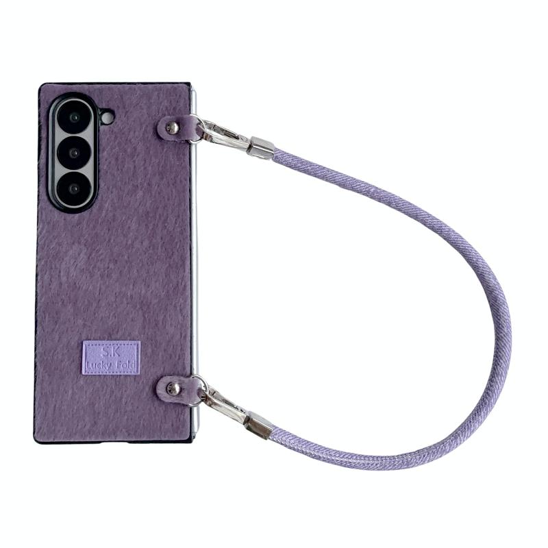 For Samsung Galaxy Z Fold Special Comfortable Short Plush Full Coverage Phone Case with Wrist Strap(Purple)