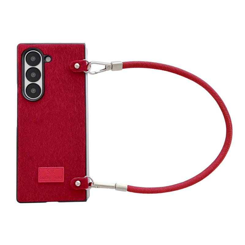 For Samsung Galaxy Z Fold Special Comfortable Short Plush Full Coverage Phone Case with Wrist Strap(Red)