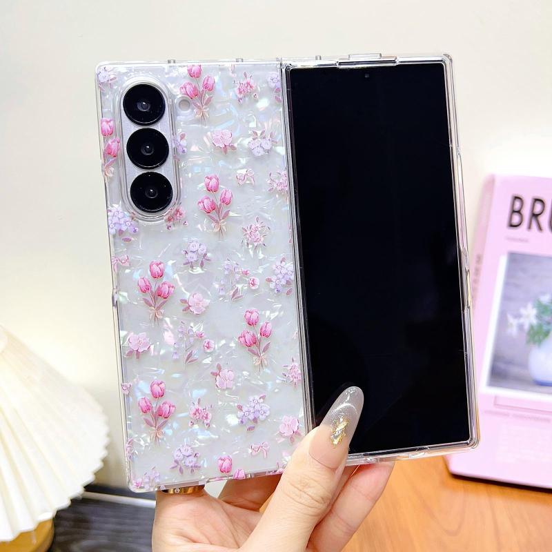 For Samsung Galaxy Z Fold Special Shell Texture Flower Pattern Protective Phone Case(Floral)