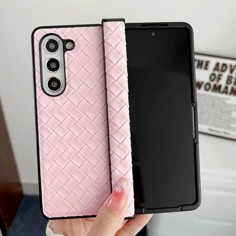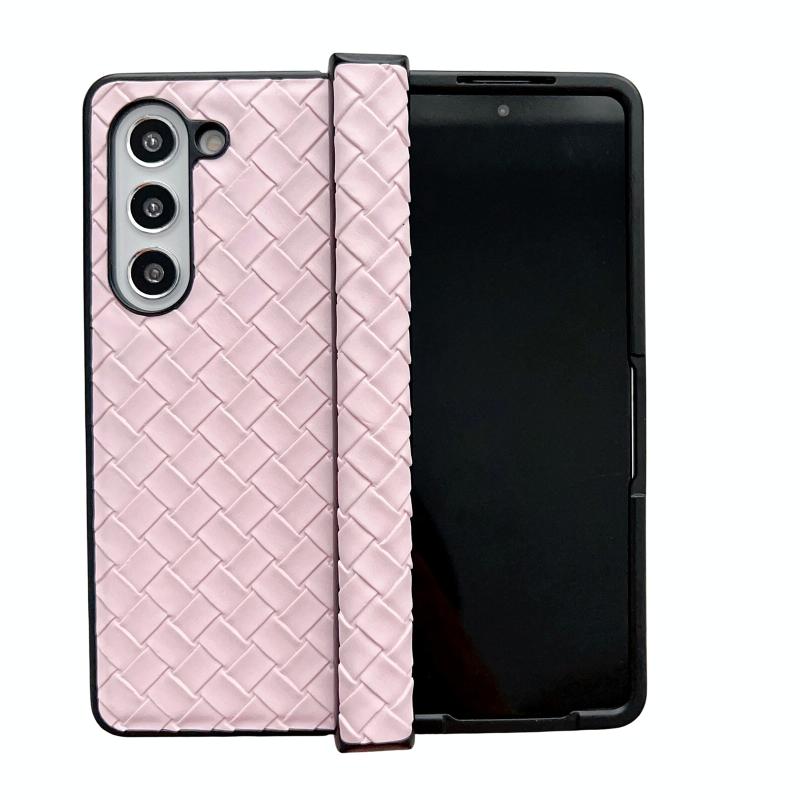 For Samsung Galaxy Z Fold Special Three-piece Set Woven Texture Folding PU Phone Case(Pink)