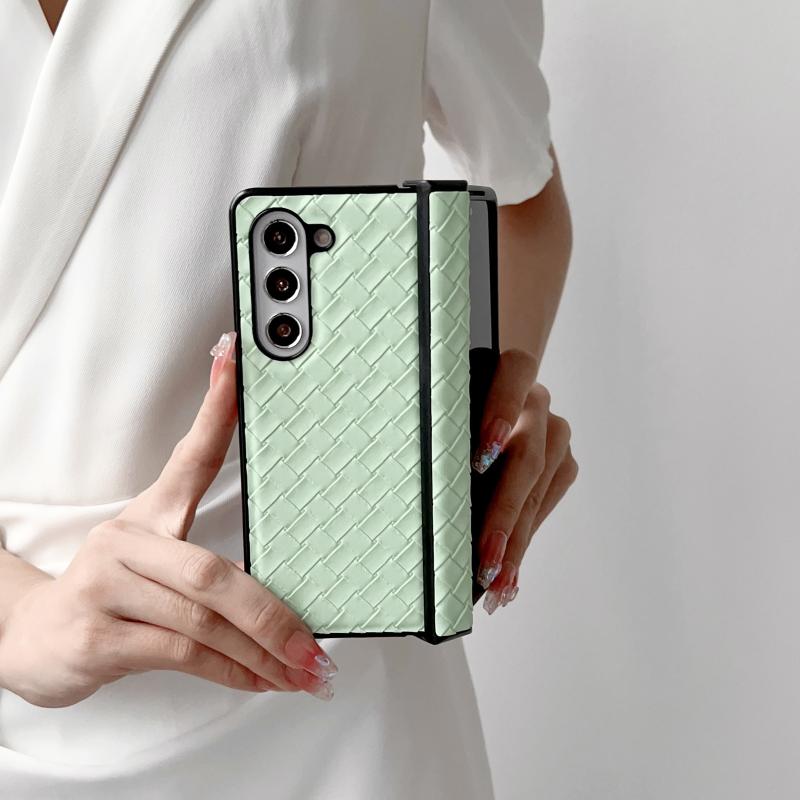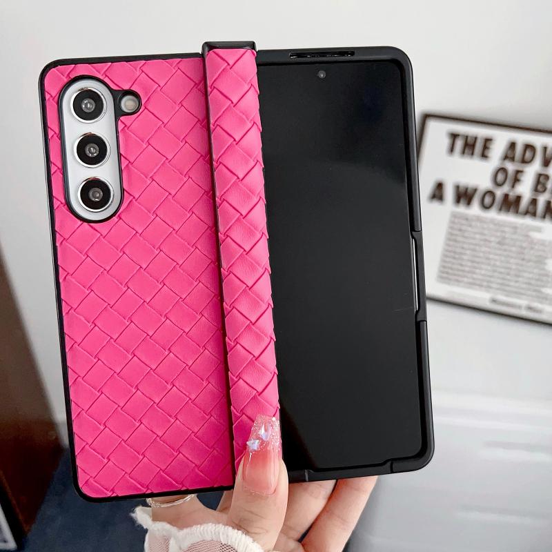 For Samsung Galaxy Z Fold Special Three-piece Set Woven Texture Folding PU Phone Case(Rose Red)