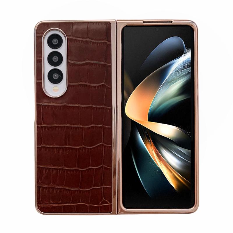 For Samsung Galaxy Z Fold4 5G Crocodile Texture Genuine Leather Electroplating Phone Case(Brown)