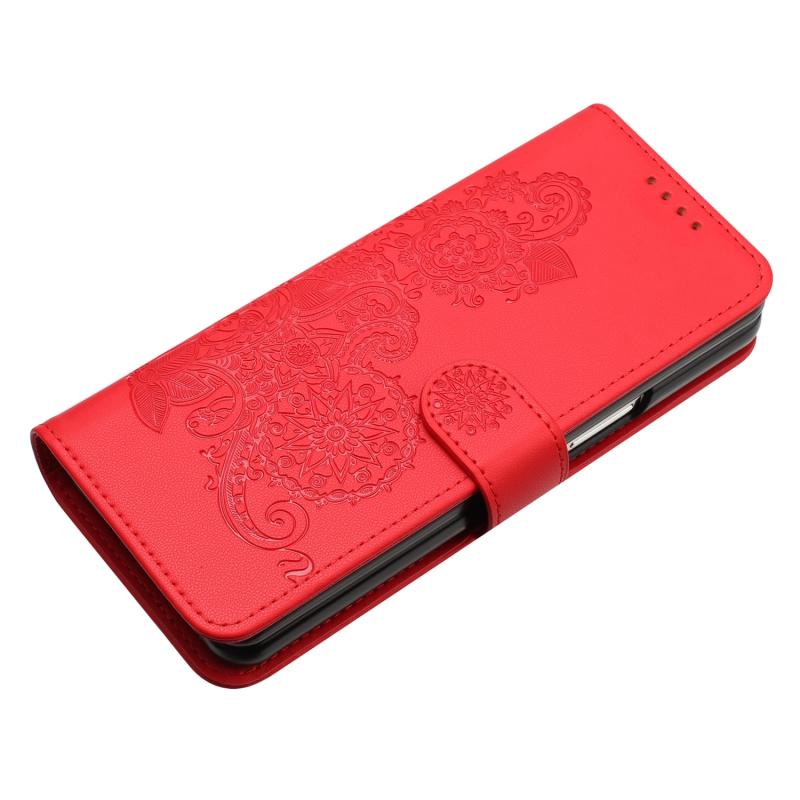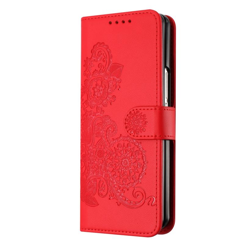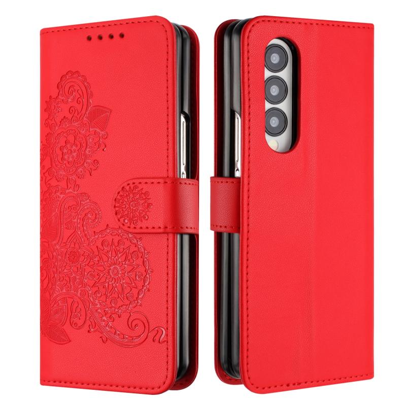 For Samsung Galaxy Z Fold4 5G Datura Flower Embossed Flip Leather Phone Case(Red)