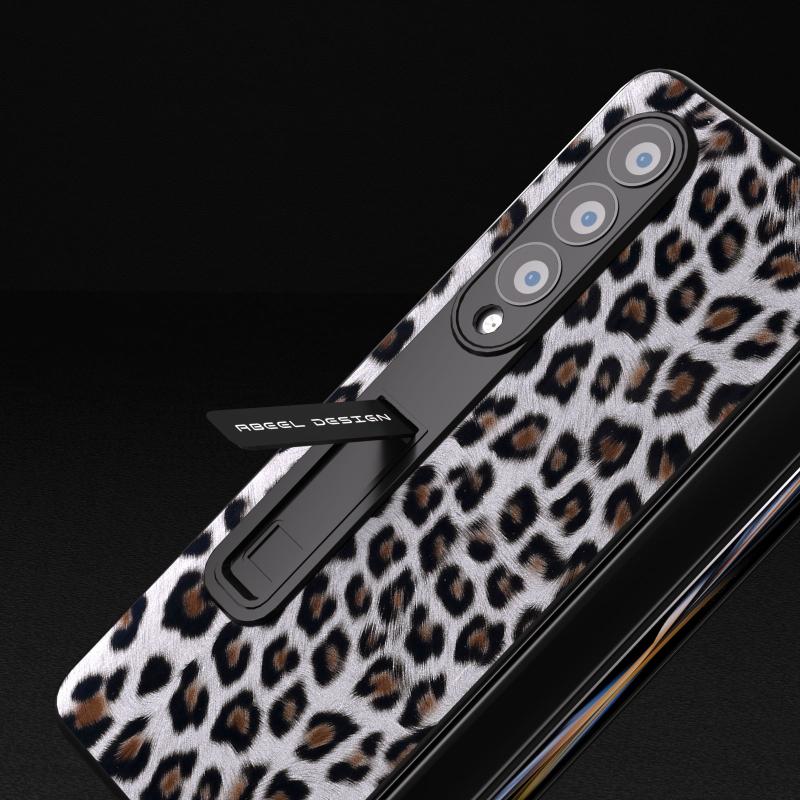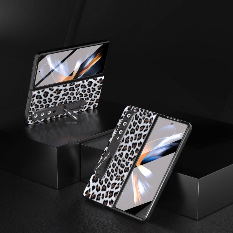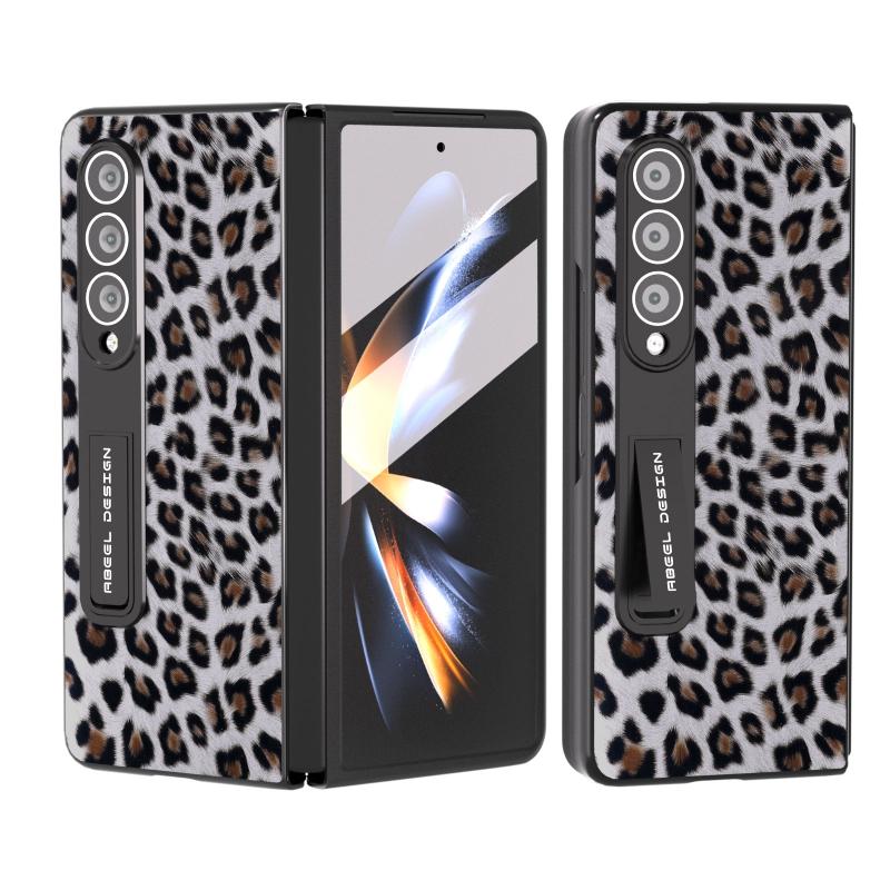 For Samsung Galaxy Z Fold4 5G Integrated Black Edge Leopard Phone Case with Holder(Silver)