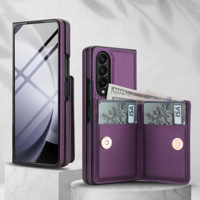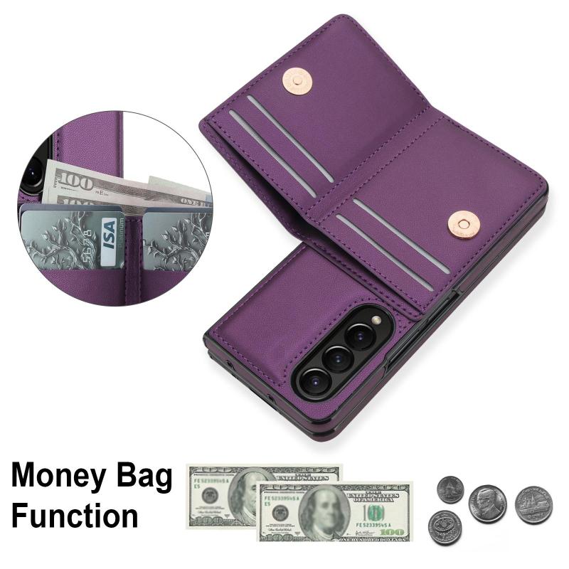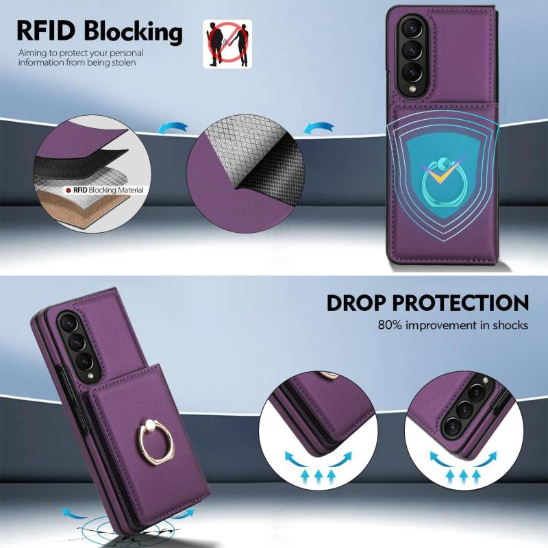 For Samsung Galaxy Z Fold4 5G Integrated Flip Cover Card Slot Holder Leather Phone Case with Ring(Dark Purple)