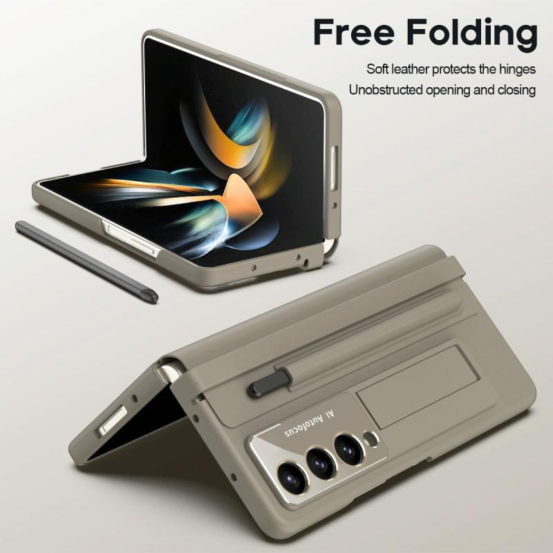 For Samsung Galaxy Z Fold4 5G Integrated PU + PC Full Coverage Phone Case with Pen/Pen Slots(Light Brown)