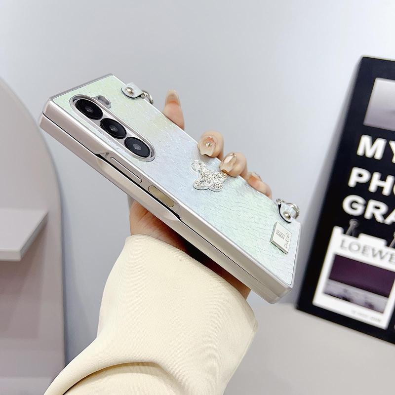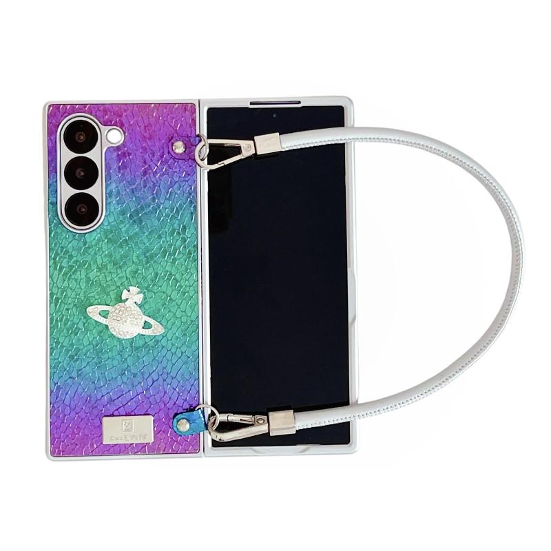 For Samsung Galaxy Z Fold4 5G Kirin Pattern Full Coverage Phone Case with Wrist Strap(Rainbow)