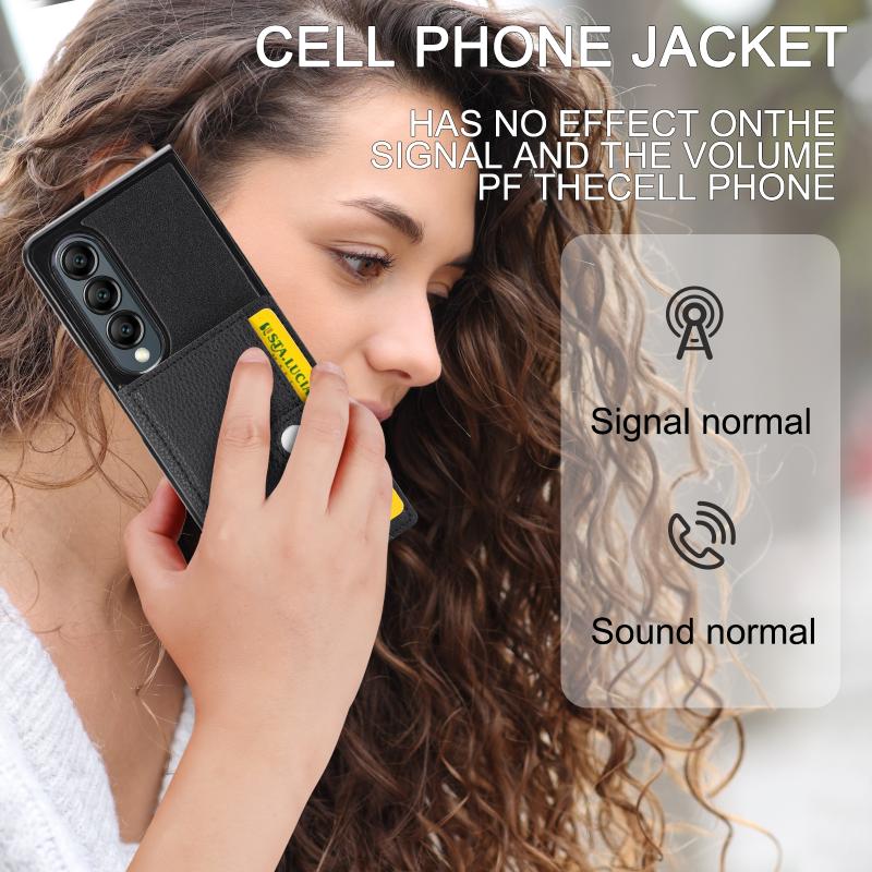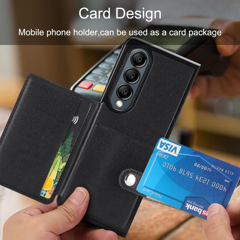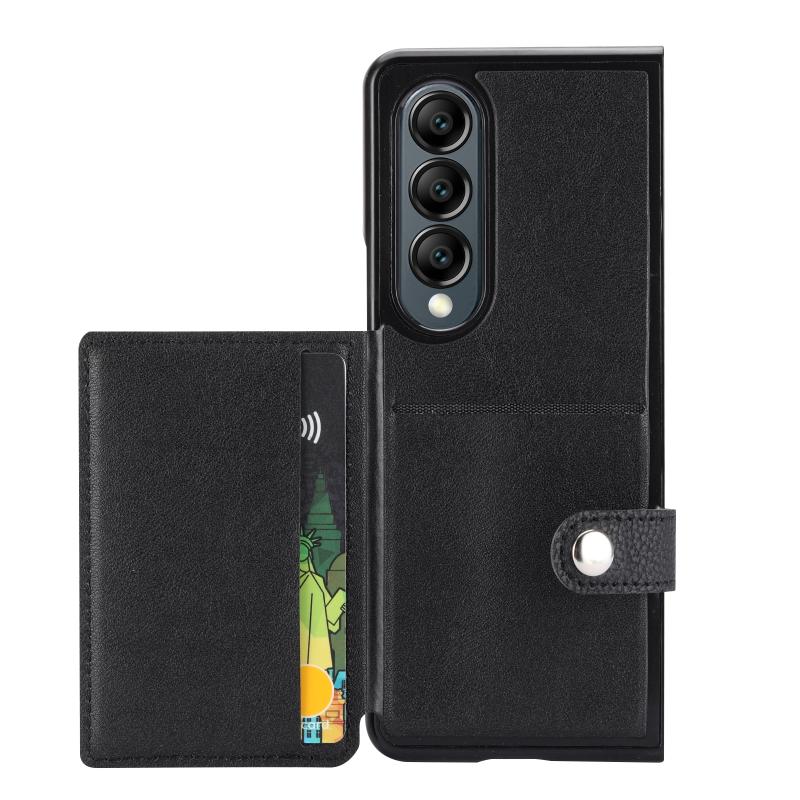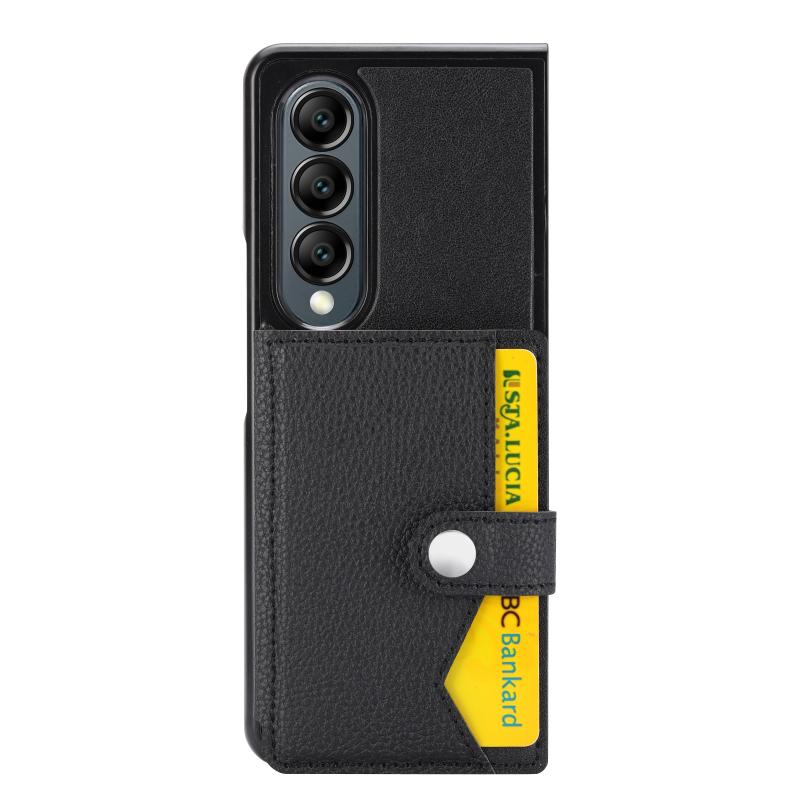 For Samsung Galaxy Z Fold4 5G Litchi Pattern Single Button Card Holder Phone Case(Black)