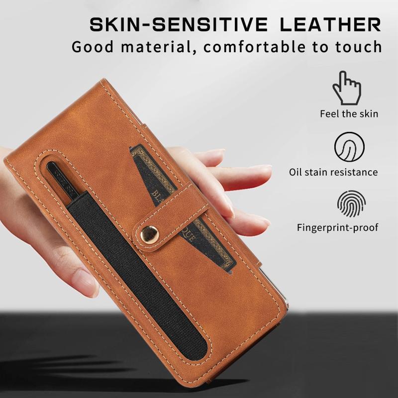 For Samsung Galaxy Z Fold4 5G PC Foldable Shockproof Leather Phone Case with Stylus(Brown)