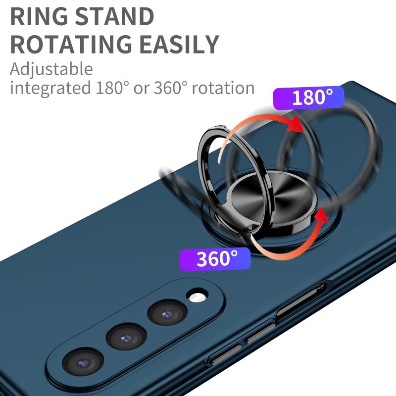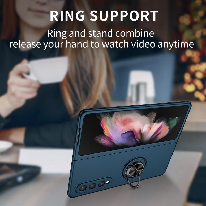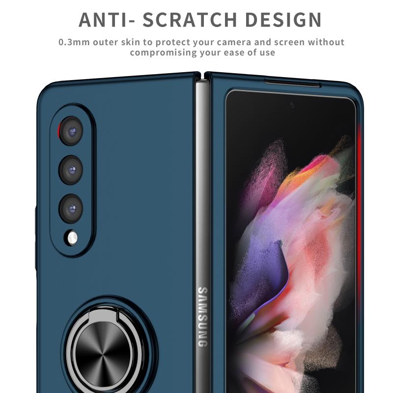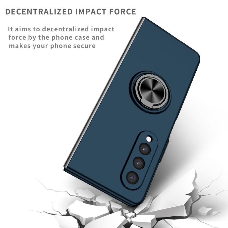For Samsung Galaxy Z Fold4 Armor Ring Holder Phone Case(Dark Blue)