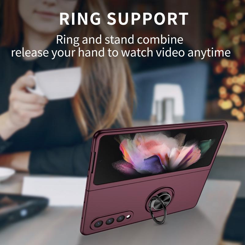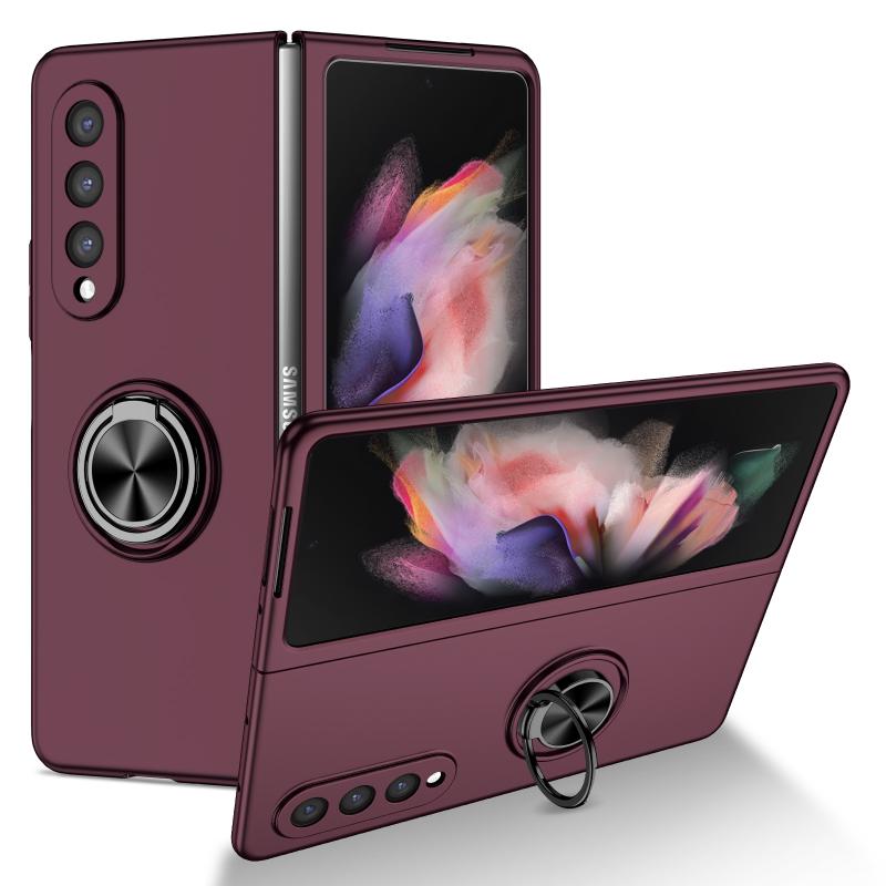 For Samsung Galaxy Z Fold4 Armor Ring Holder Phone Case(Wine Red)