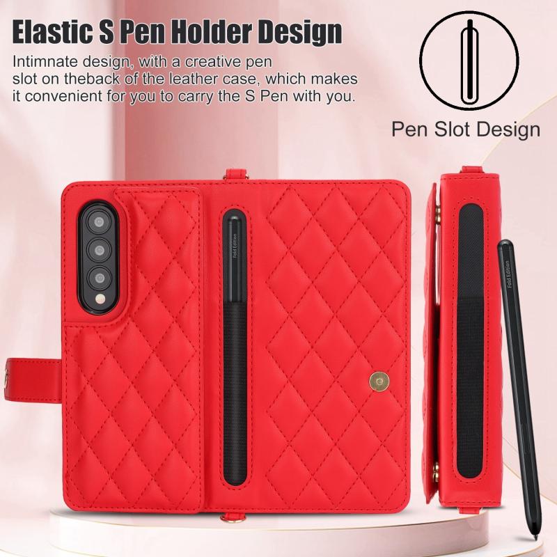 For Samsung Galaxy Z Fold4 Crossbody Multifunction Rhombic Leather Phone Case(Red)