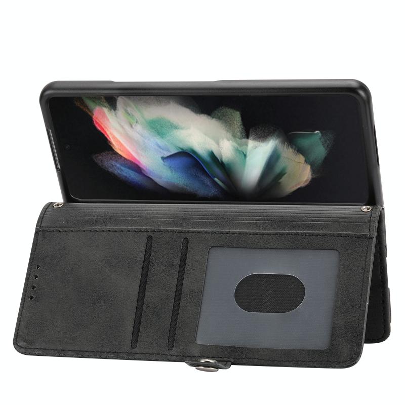 For Samsung Galaxy Z Fold4 Cubic Grid Calf Texture Leather Phone Case(Black)