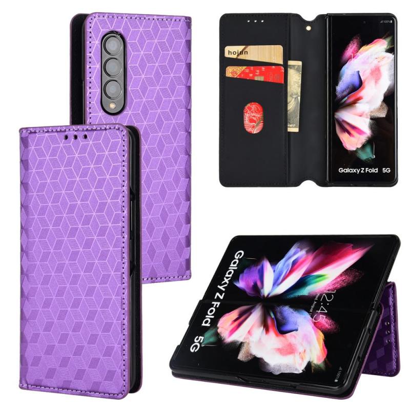 For Samsung Galaxy Z Fold4 Cubic Grid Texture Flip Leather Phone Case(Purple)