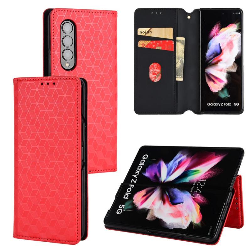 For Samsung Galaxy Z Fold4 Cubic Grid Texture Flip Leather Phone Case(Red)