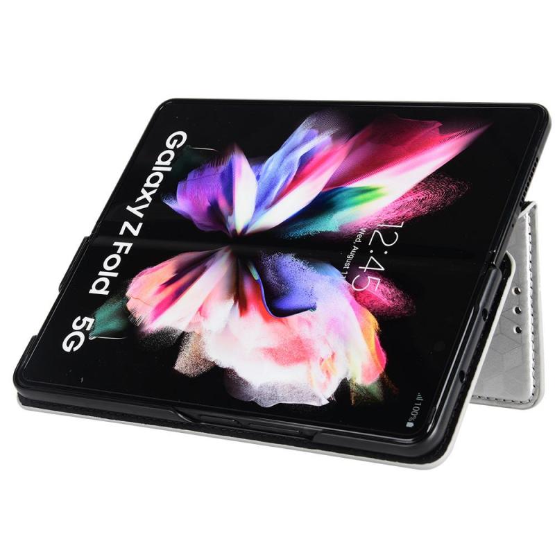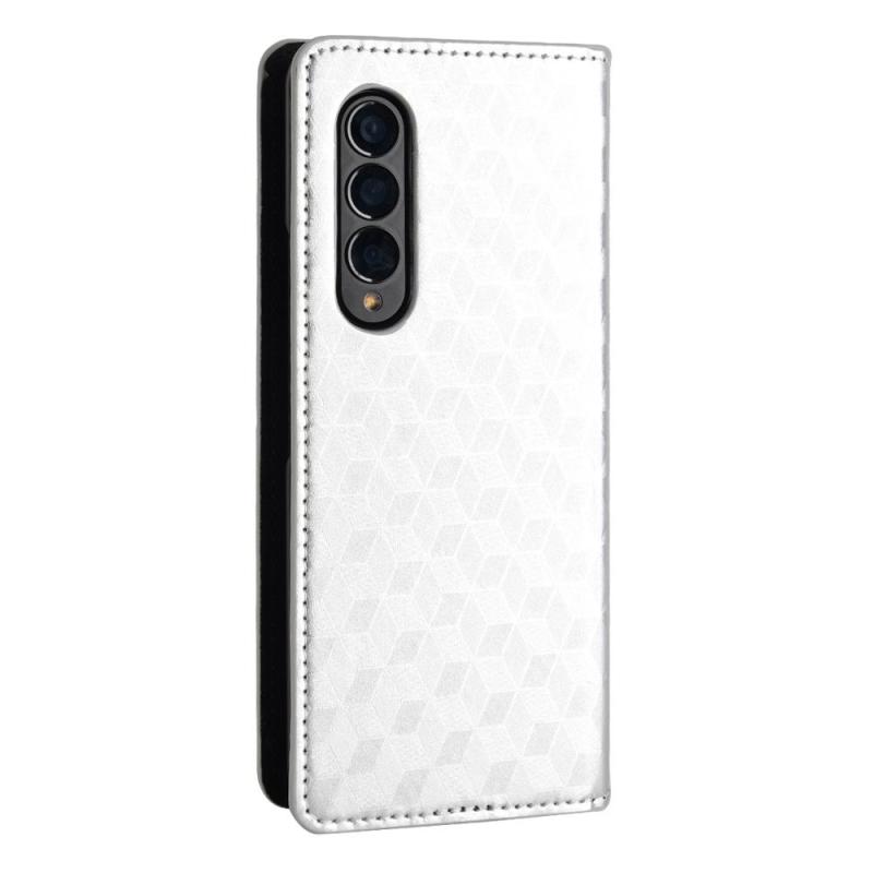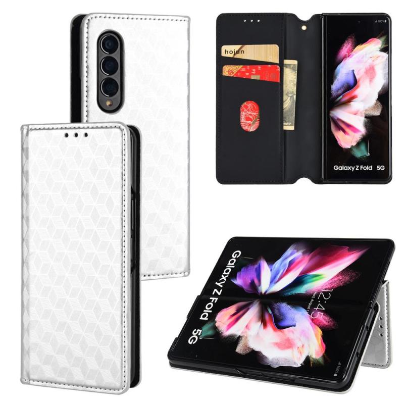 For Samsung Galaxy Z Fold4 Cubic Grid Texture Flip Leather Phone Case(Silver)