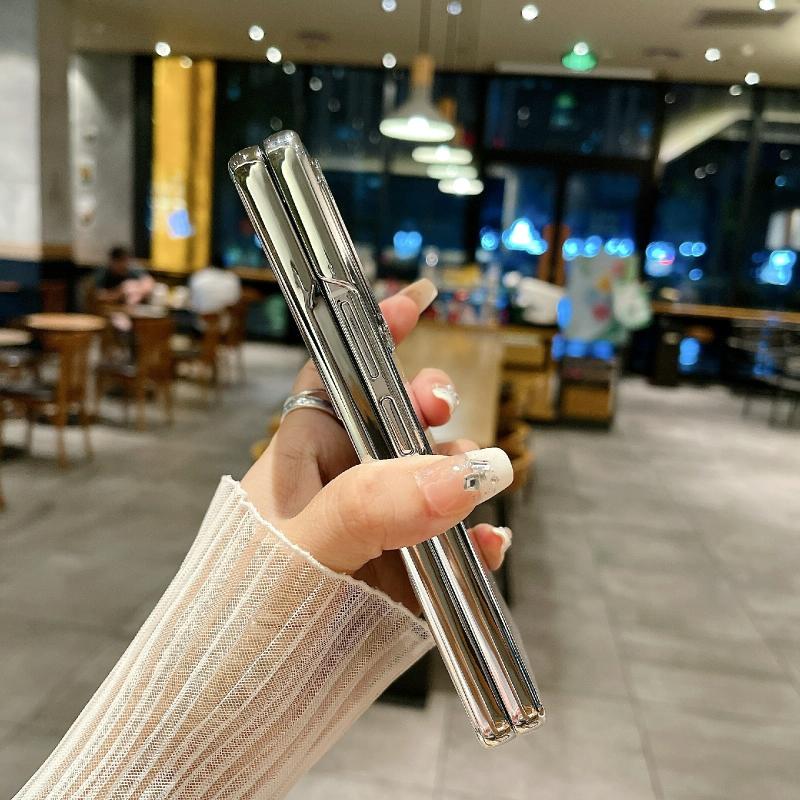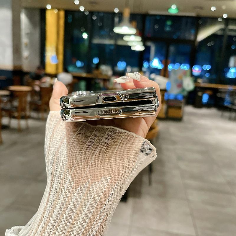 For Samsung Galaxy Z Fold4 Electroplating Frame + Glitter Paper Full Coverage Phone Case(Pink)