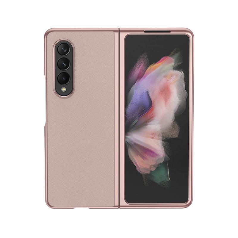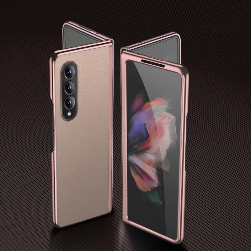 For Samsung Galaxy Z Fold4 Electroplating Plain Leather Folding Phone Case(Rose Gold)
