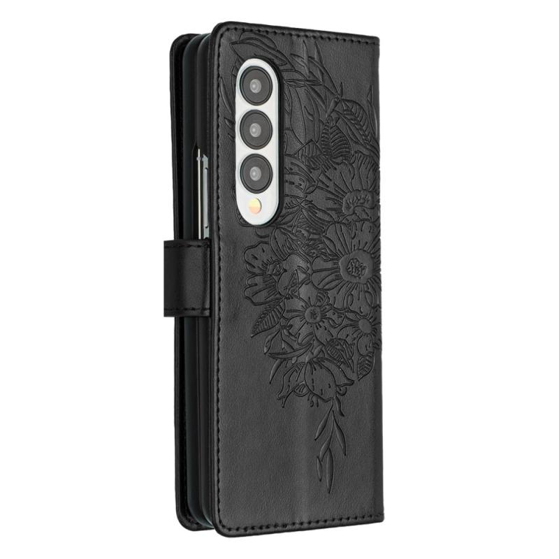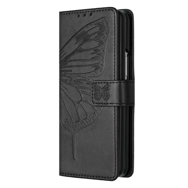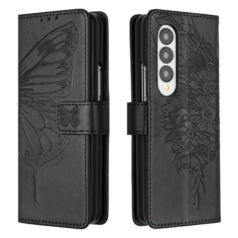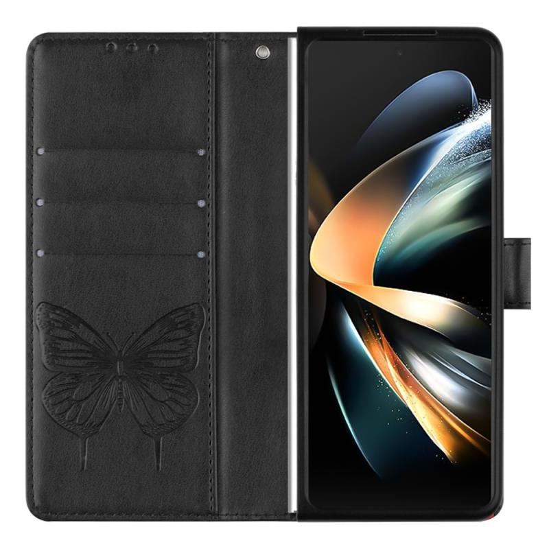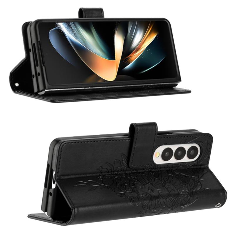 For Samsung Galaxy Z Fold4 Embossed Butterfly Leather Phone Case(Black)