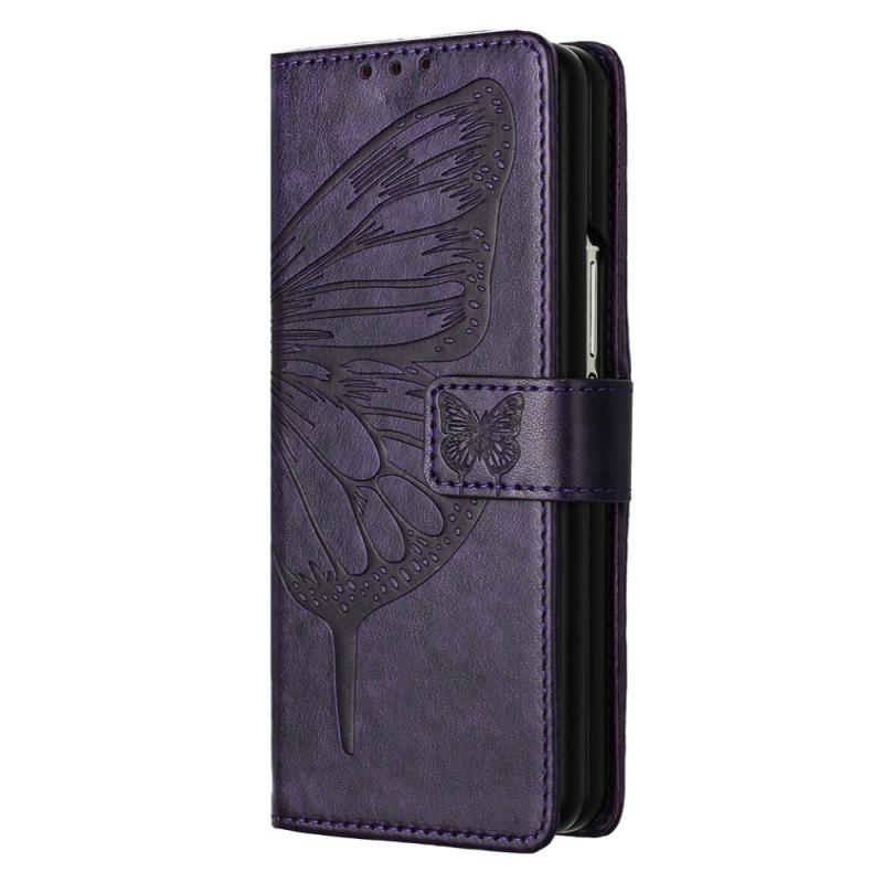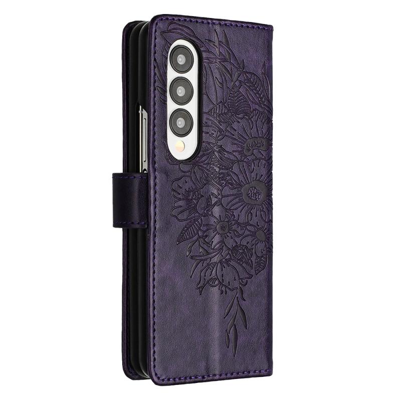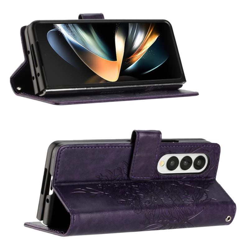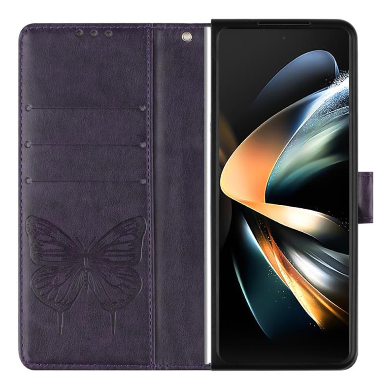 For Samsung Galaxy Z Fold4 Embossed Butterfly Leather Phone Case(Dark Purple)