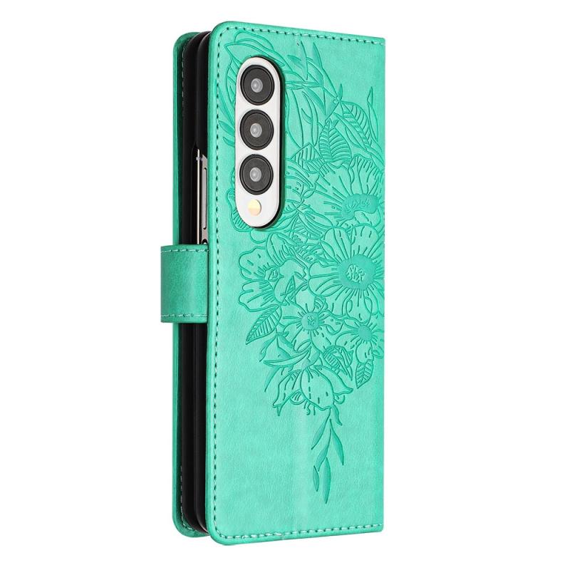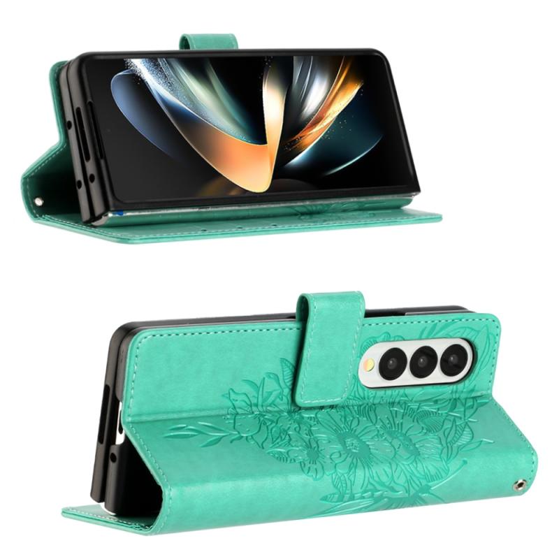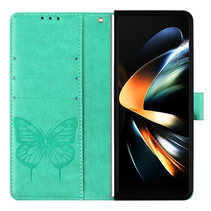 For Samsung Galaxy Z Fold4 Embossed Butterfly Leather Phone Case(Green)