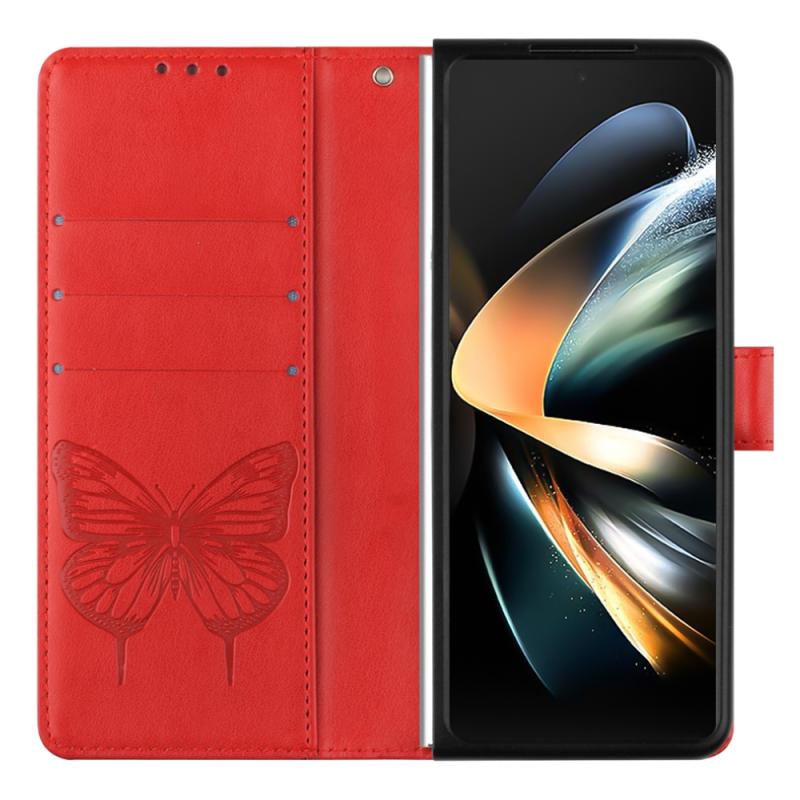 For Samsung Galaxy Z Fold4 Embossed Butterfly Leather Phone Case(Red)