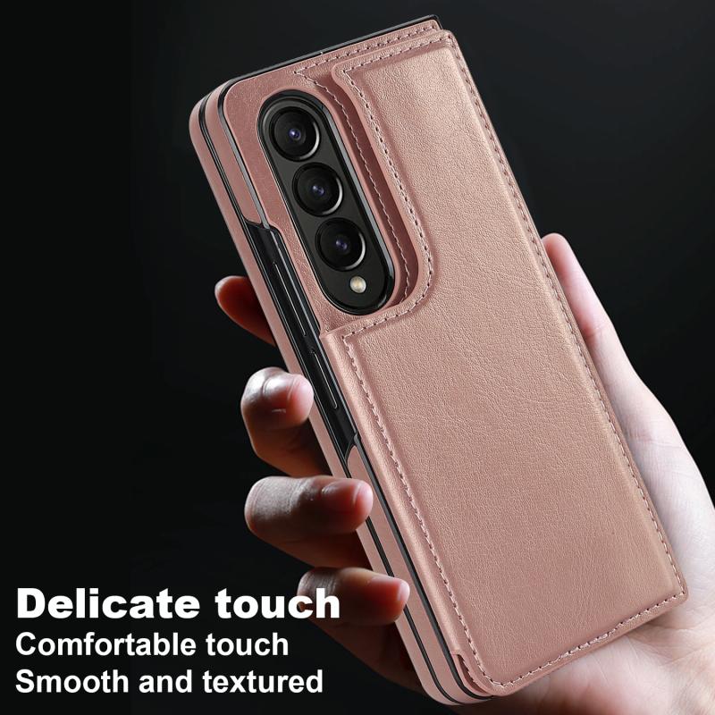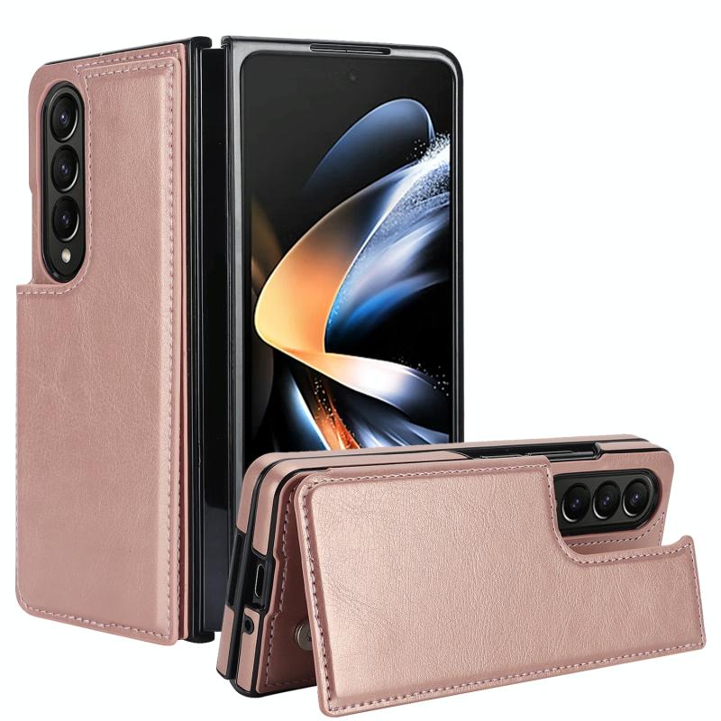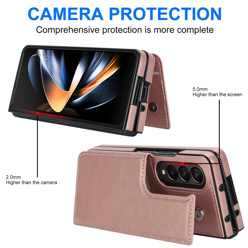 For Samsung Galaxy Z Fold4 Full Coverage Fold Double Buckle PU Phone Case(Rose Gold)